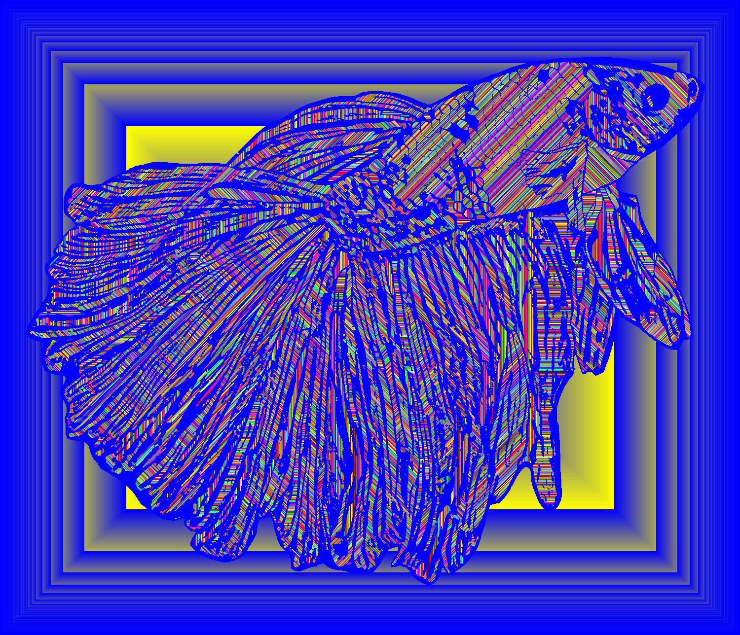 Leo Facing Right With Blue Outline On Multisquare Blue Background With Stripe Pattern.