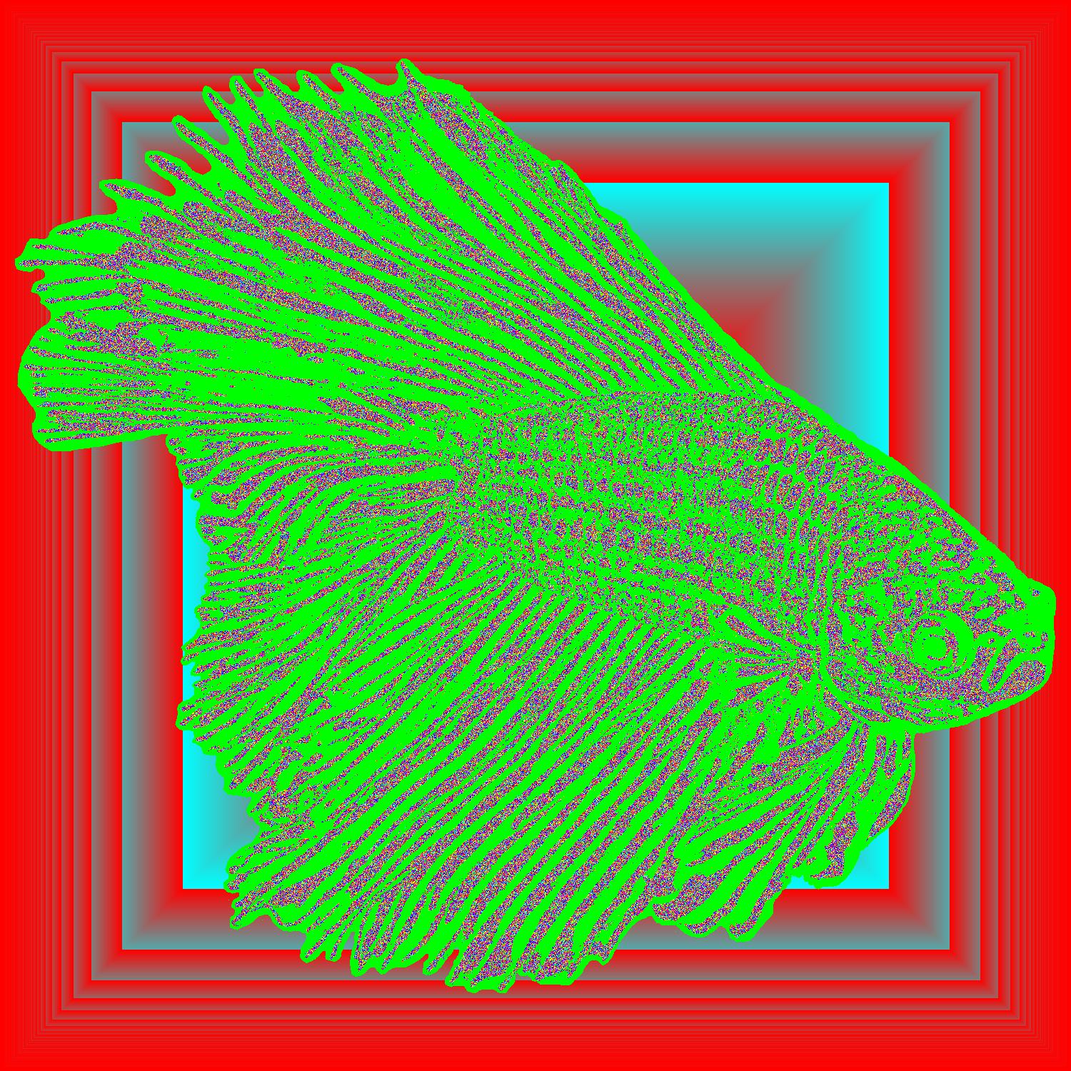 Flare Facing Forward With Green Outline On Multisquare Red Background With Noise Pattern.