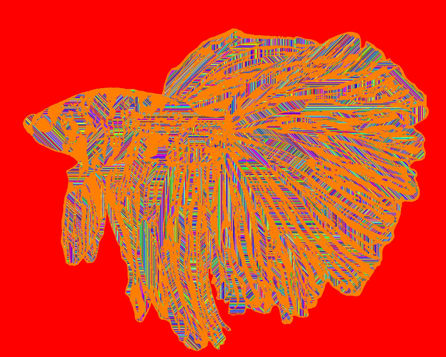 Leo Facing Left With Orange Outline On Solid Red Background With Stripe Pattern.