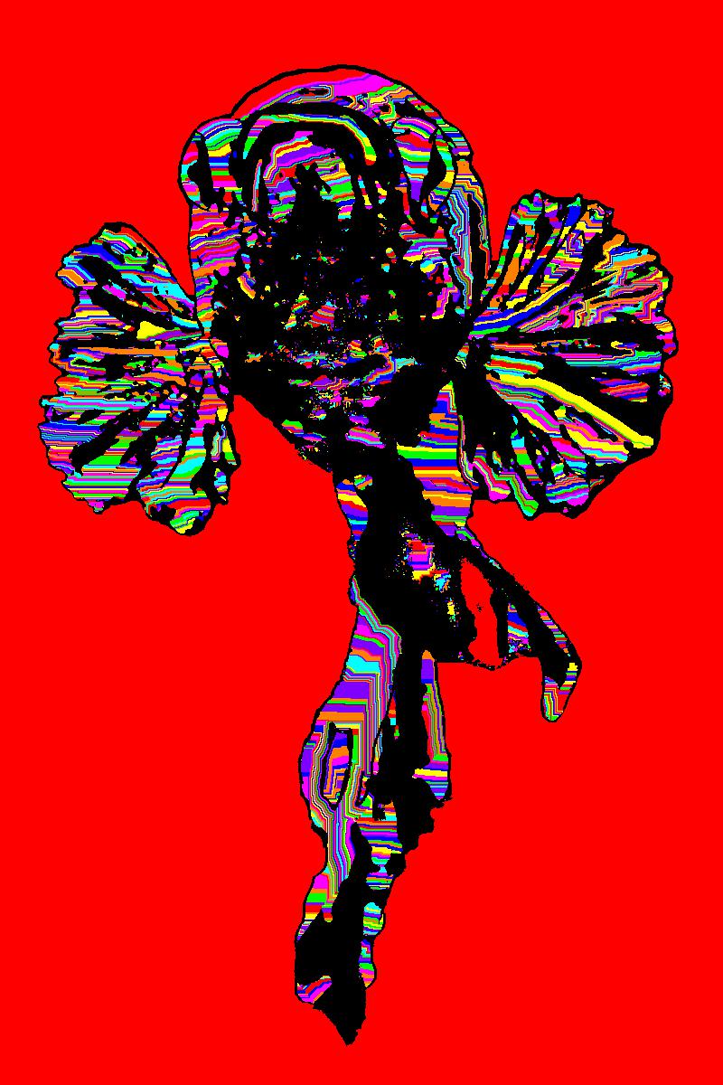 Plasma Frowning With Black Outline On Solid Red Background With Snake Pattern.