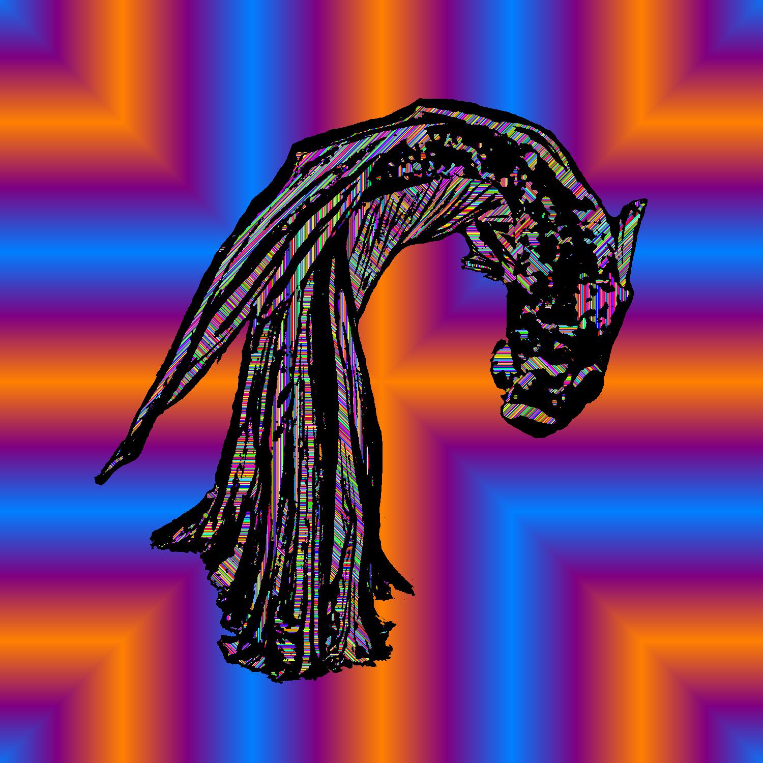 Leo Turning With Black Outline On Plus Orange Background With Stripe Pattern.