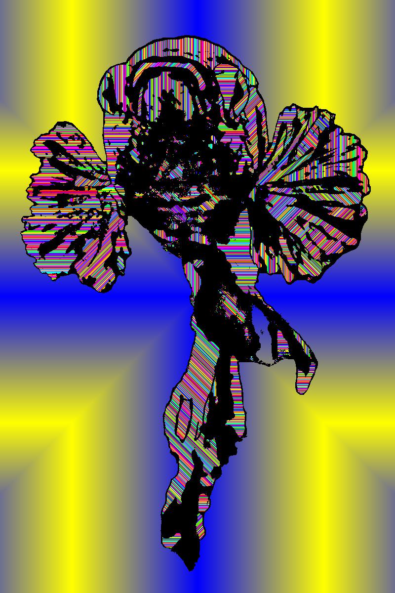 Plasma Frowning With Black Outline On Plus Blue Background With Stripe Pattern.