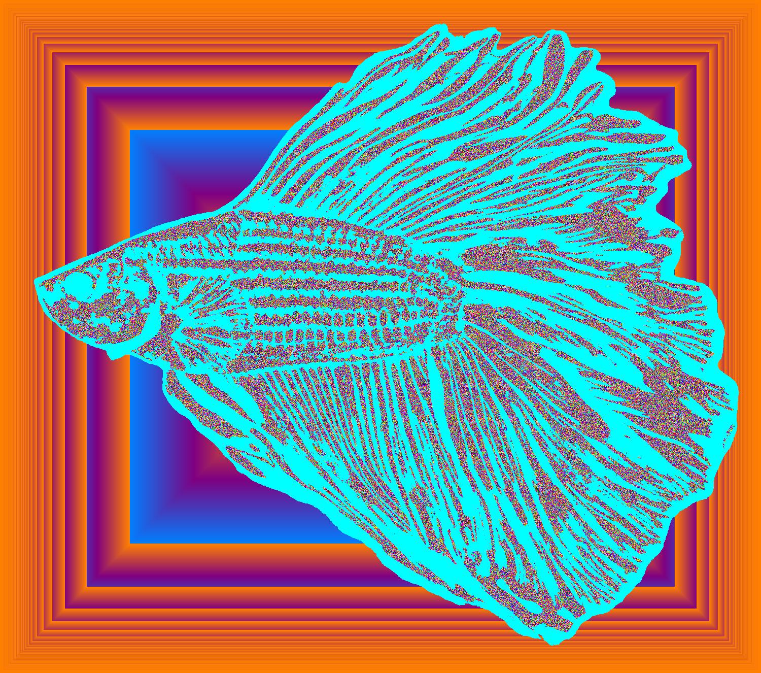Flare Facing Left With Lightblue Outline On Multisquare Orange Background With Noise Pattern.