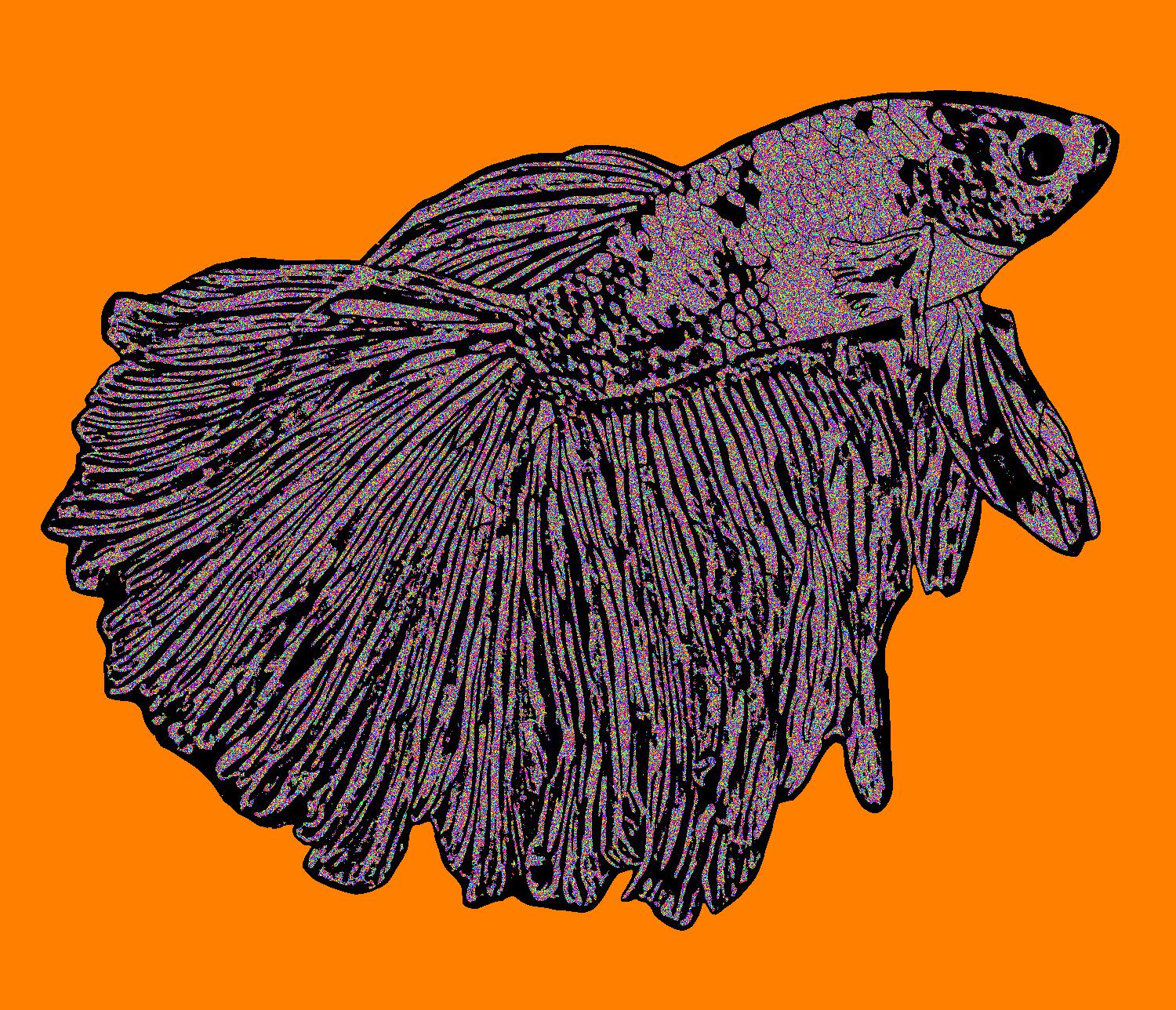 Leo Facing Right With Black Outline On Solid Orange Background With Noise Pattern.