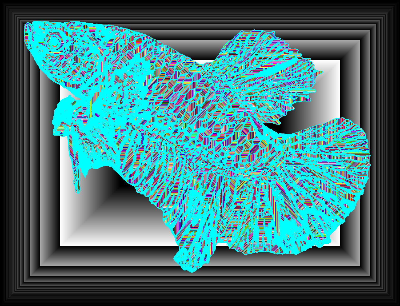 Plasma Facing Left With Lightblue Outline On Multisquare Black Background With Stripe Pattern.