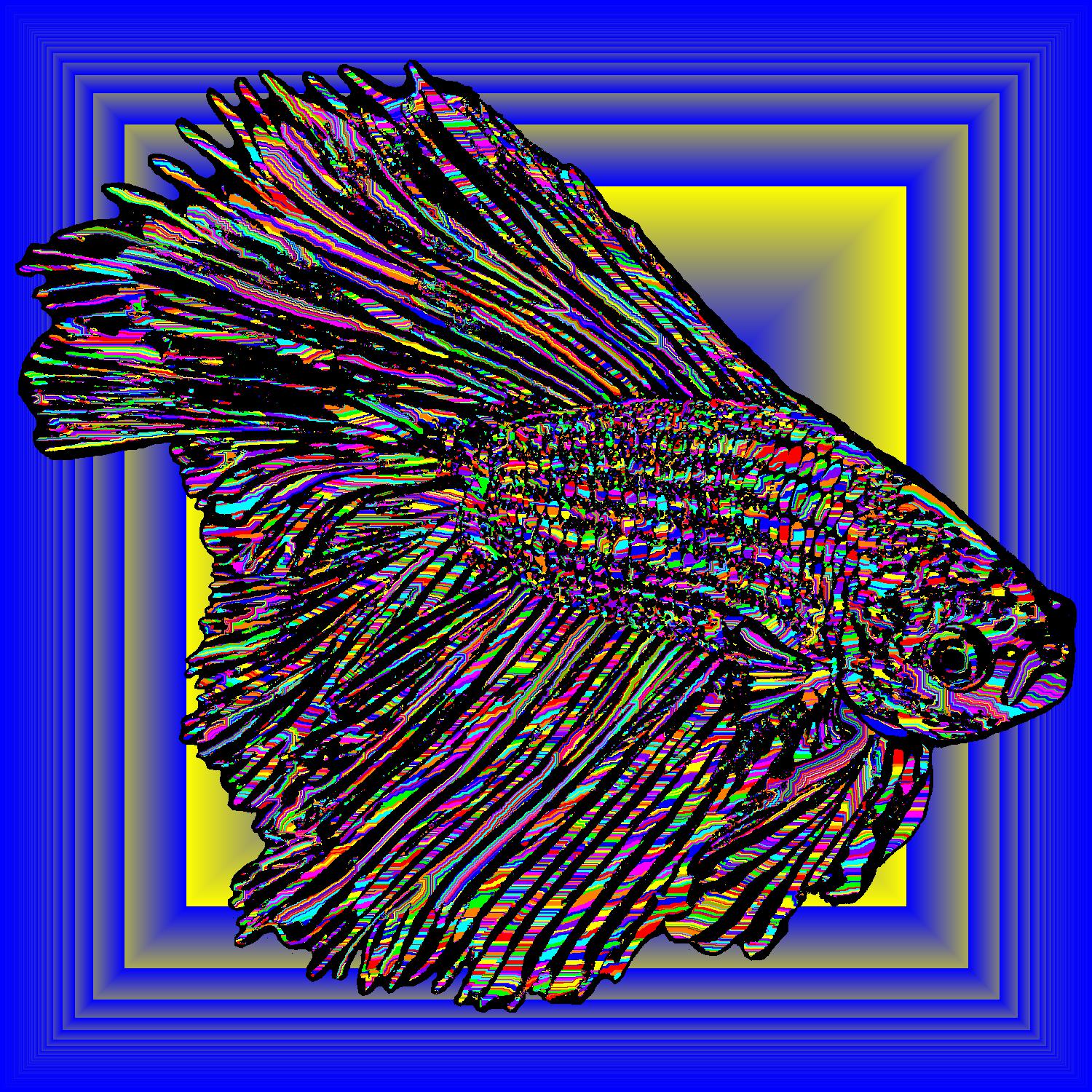 Flare Facing Forward With Black Outline On Multisquare Blue Background With Snake Pattern.