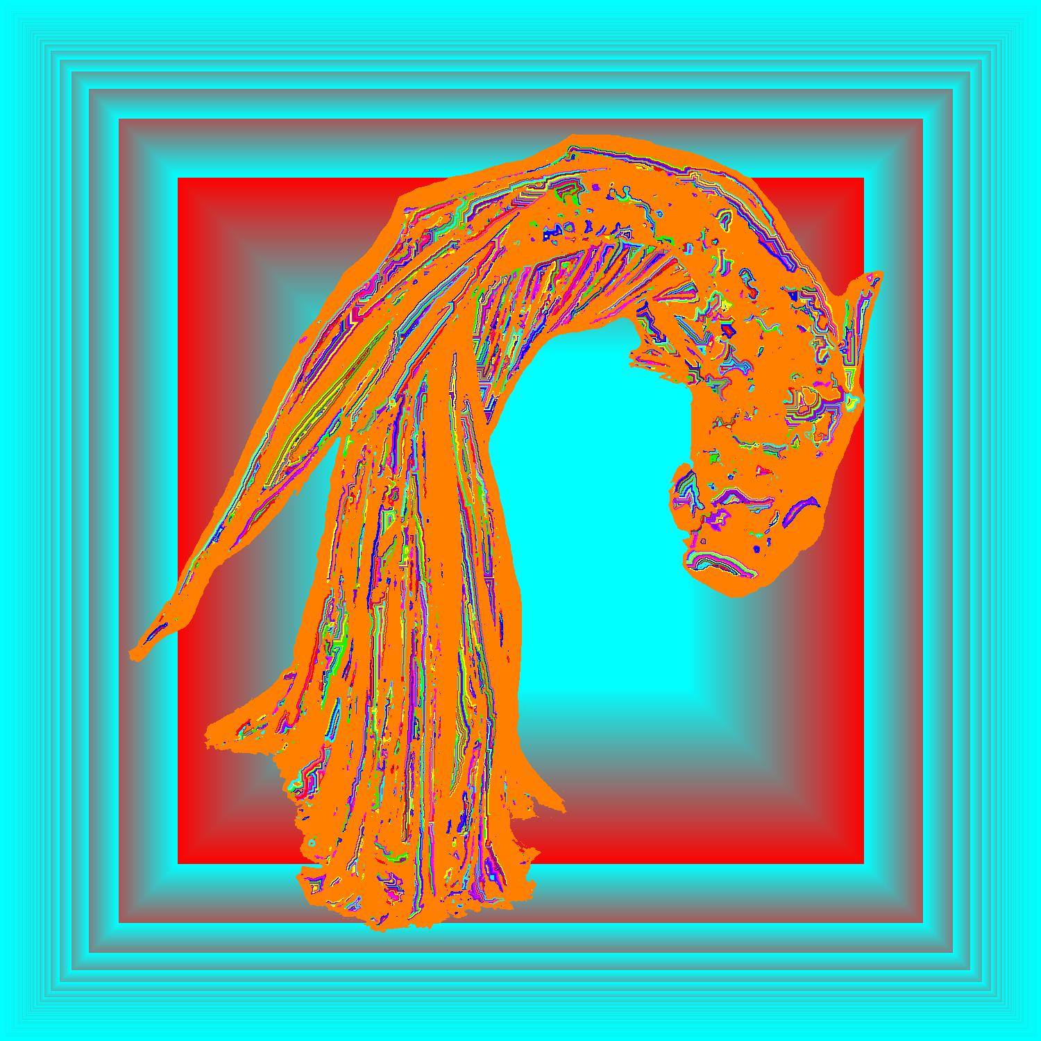 Leo Turning With Orange Outline On Multisquare Lightblue Background With Edge Pattern.