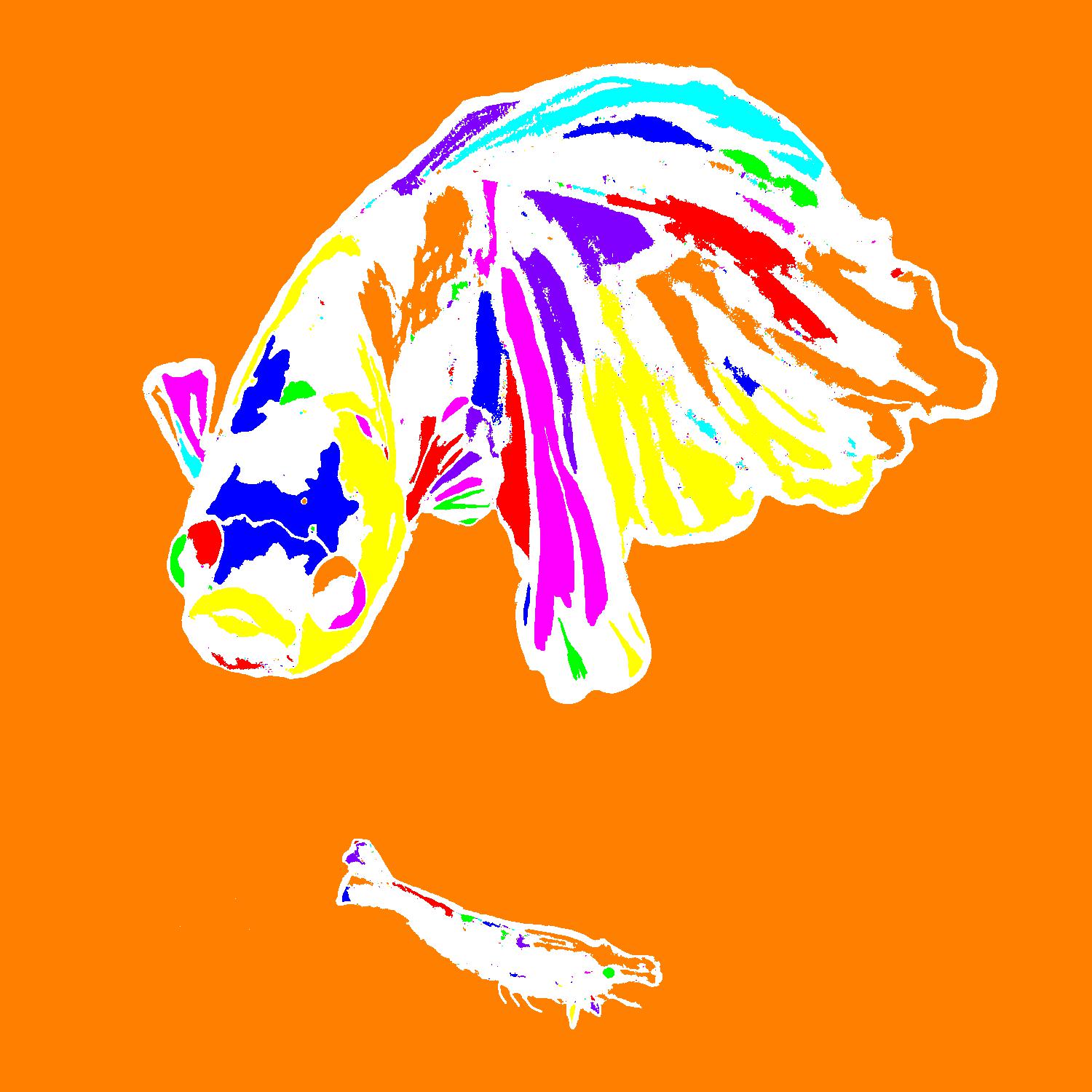 Leo Angry At Shrimp With White Outline On Solid Orange Background With Fill Pattern.