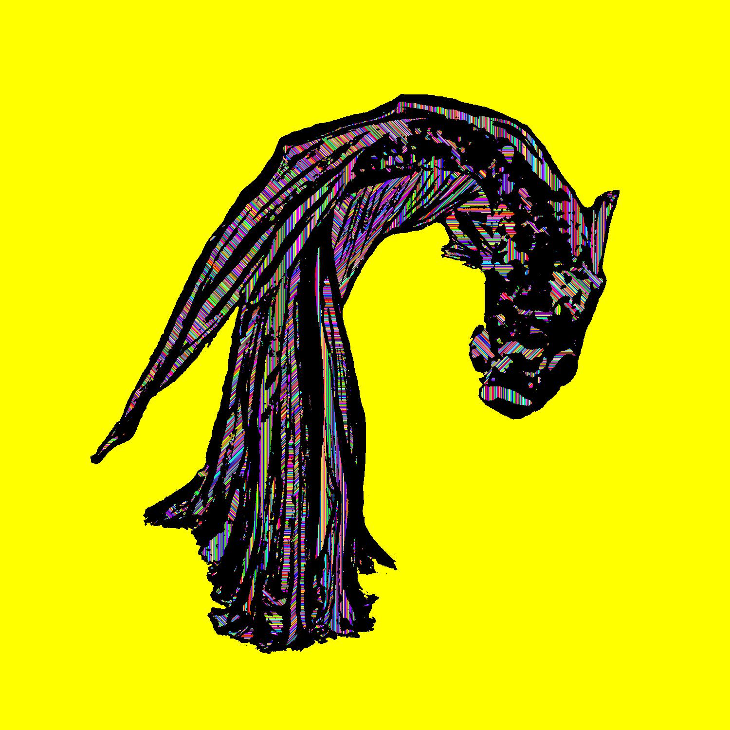 Leo Turning With Black Outline On Solid Yellow Background With Stripe Pattern.