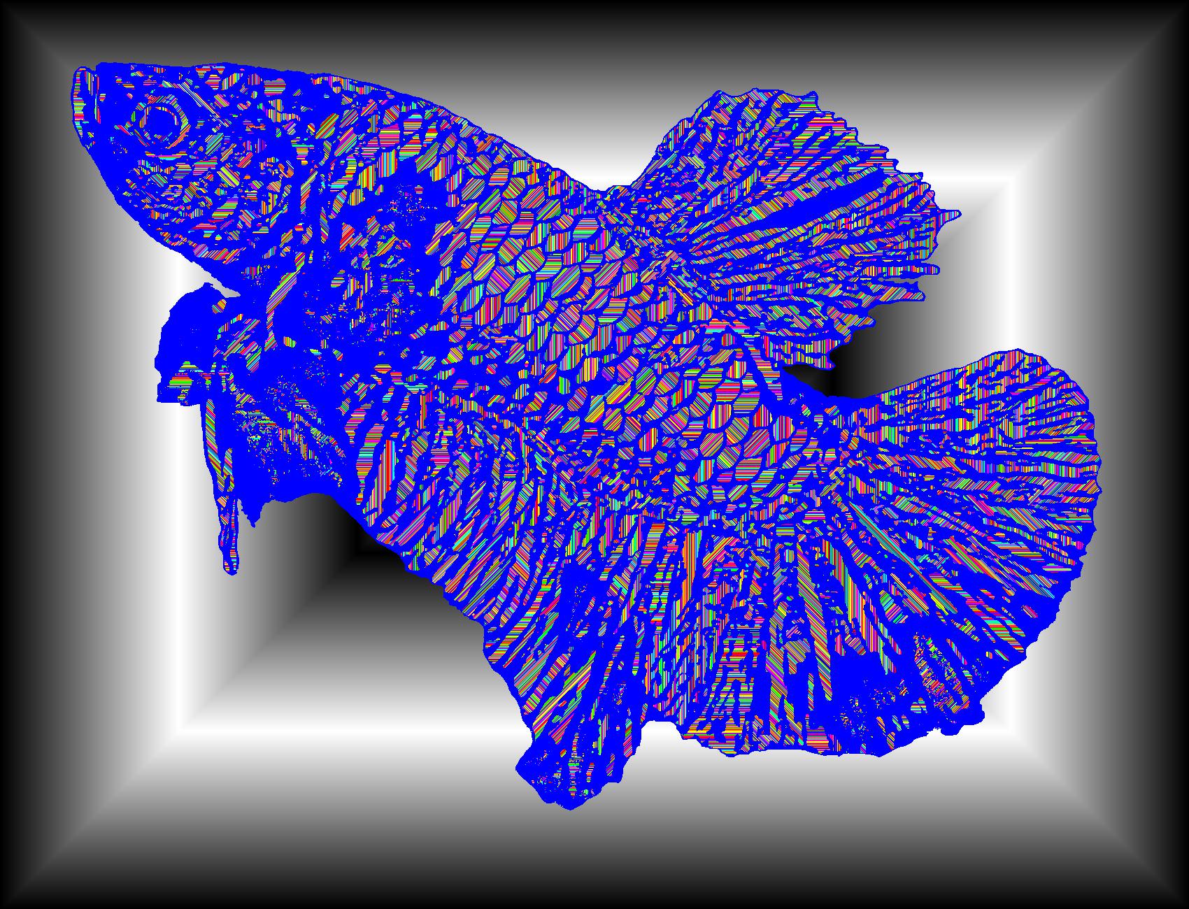 Plasma Facing Left With Blue Outline On Halo Black Background With Stripe Pattern.