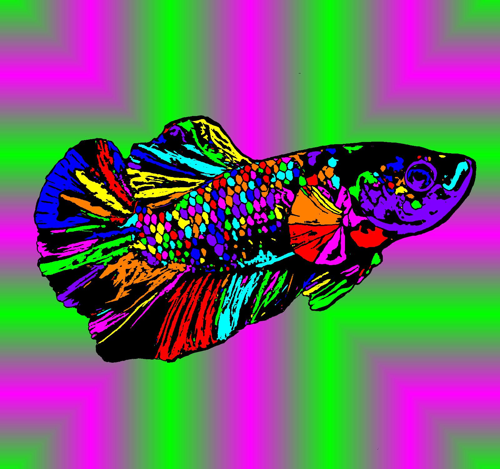 Young Plasma Facing Right With Black Outline On Plus Pink Background With Fill Pattern.