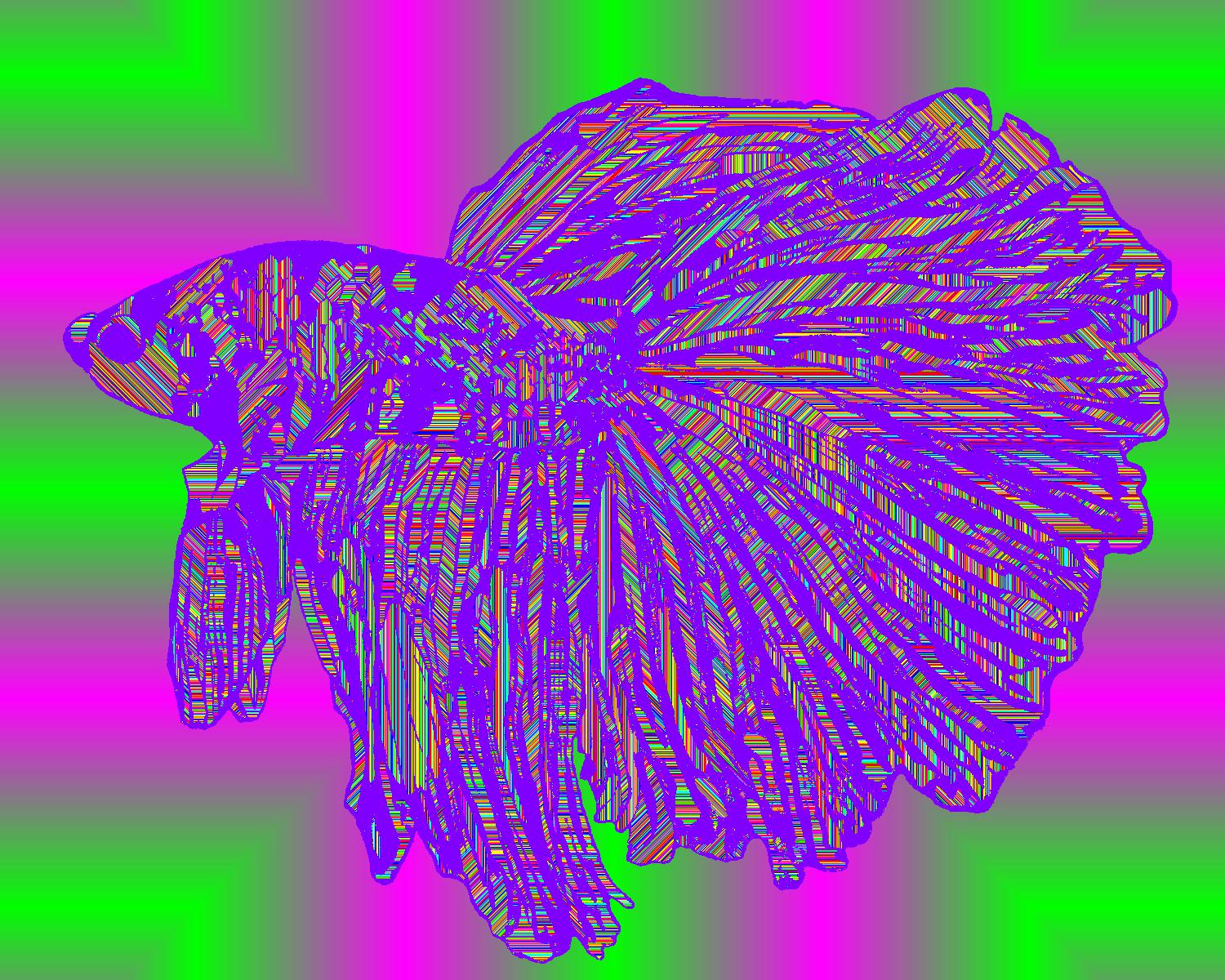 Leo Facing Left With Purple Outline On Plus Green Background With Stripe Pattern.