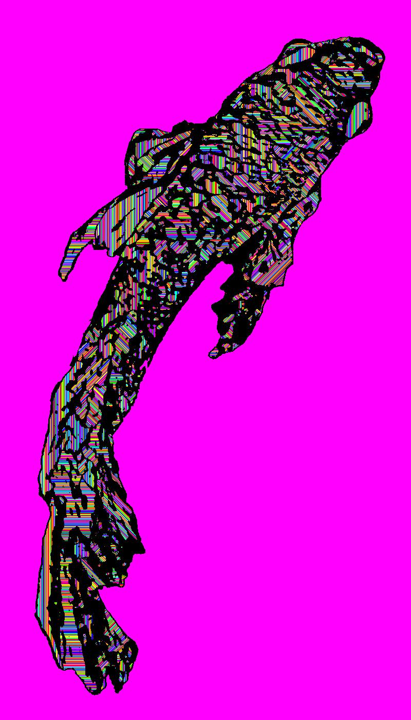 Plasma From Above With Black Outline On Solid Pink Background With Stripe Pattern.