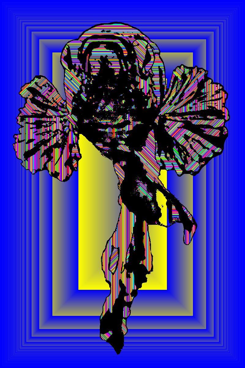 Plasma Frowning With Black Outline On Multisquare Blue Background With Stripe Pattern.