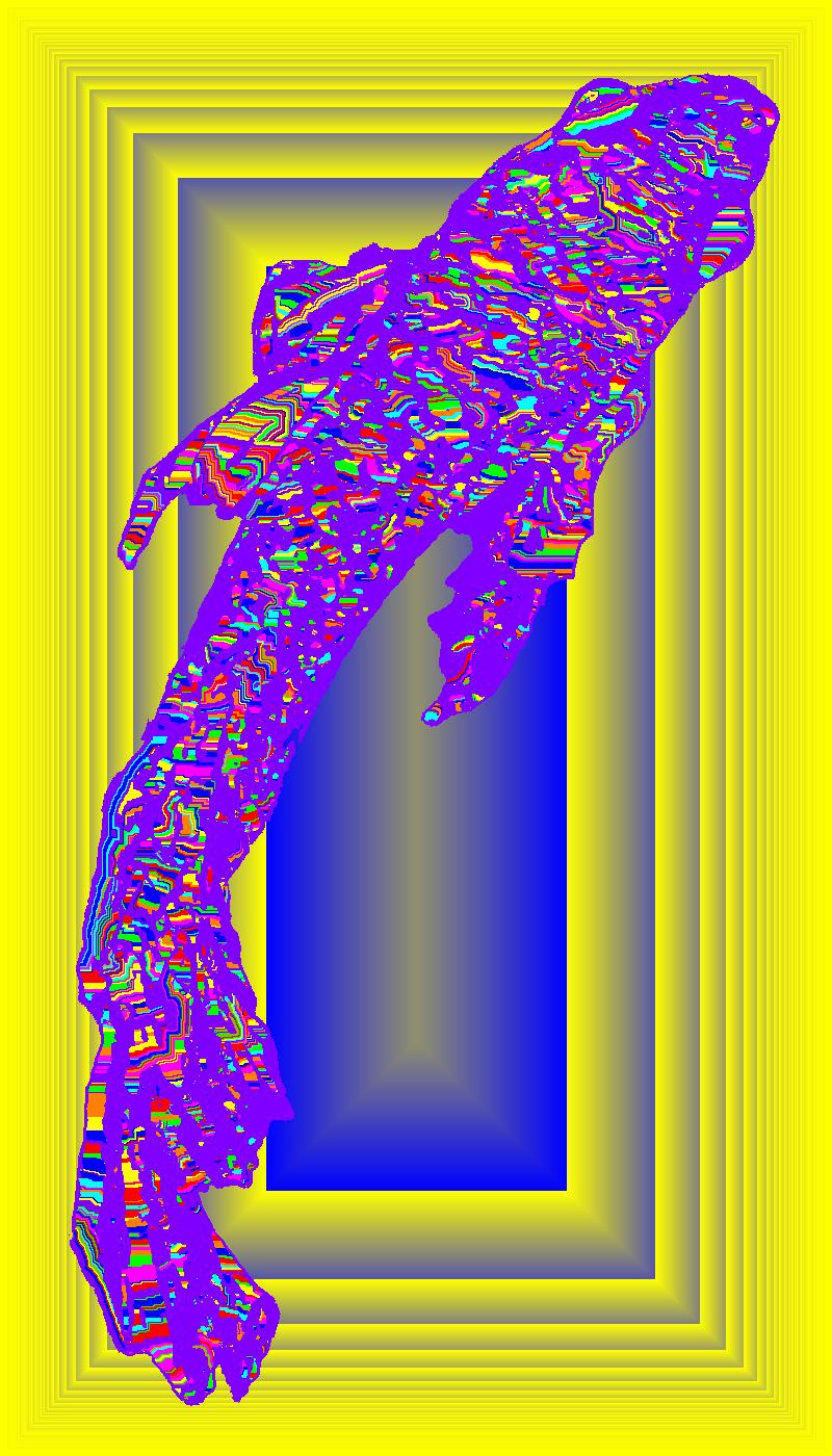 Plasma From Above With Purple Outline On Multisquare Yellow Background With Snake Pattern.