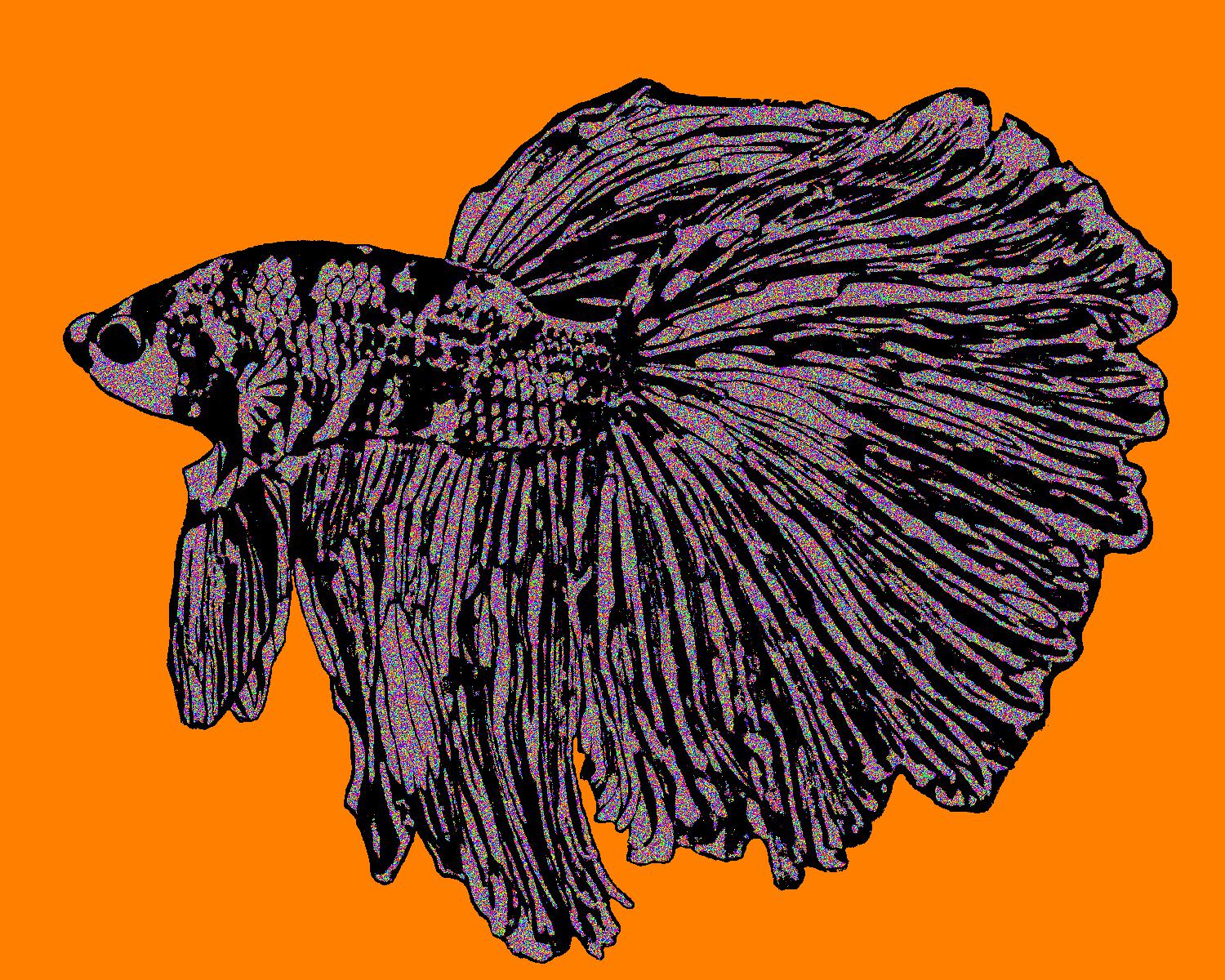 Leo Facing Left With Black Outline On Solid Orange Background With Noise Pattern.