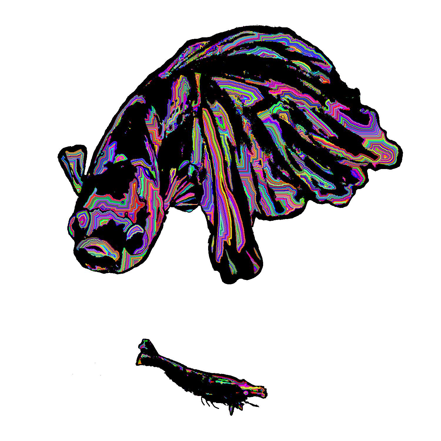 Leo Angry At Shrimp With Black Outline On Solid White Background With Edge Pattern.