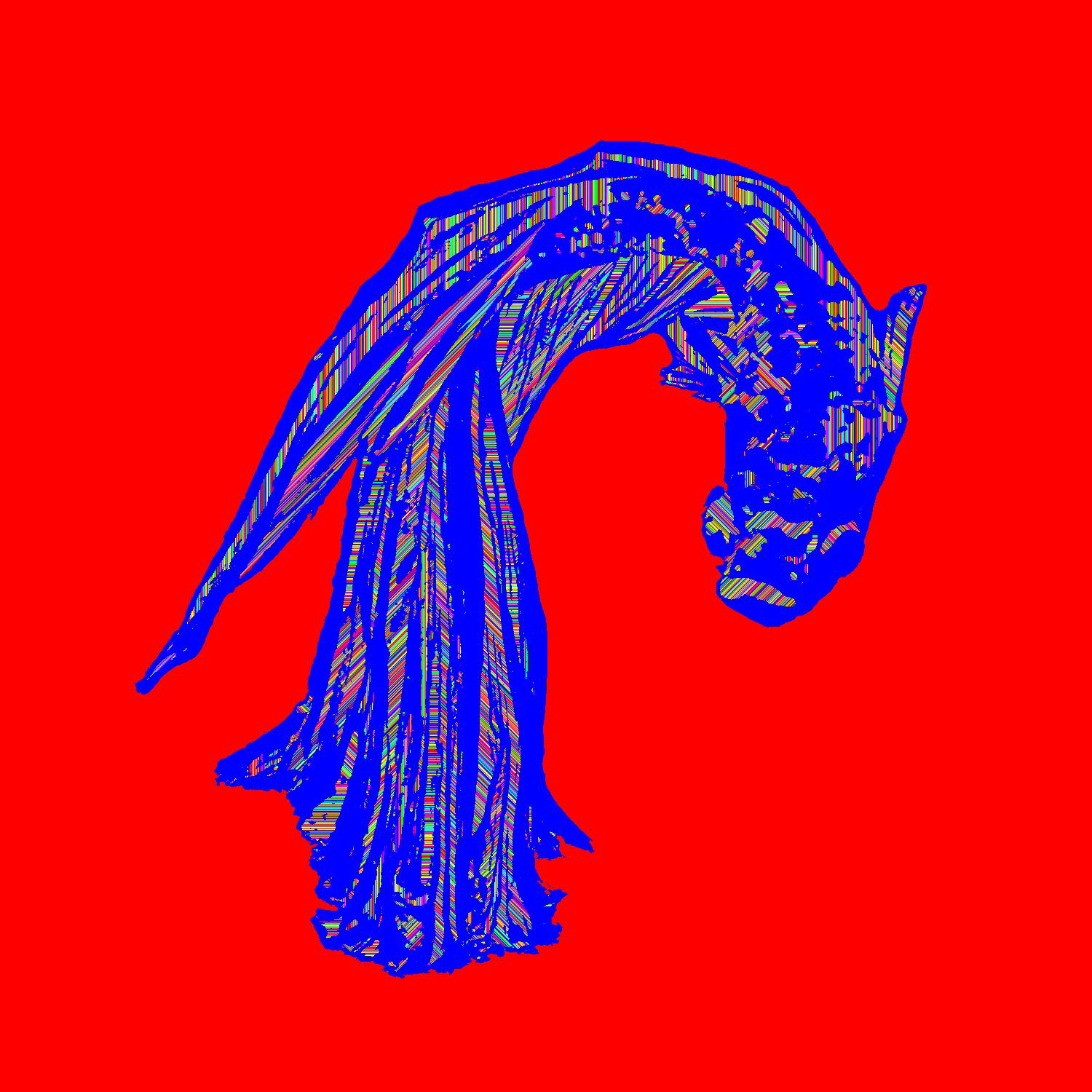 Leo Turning With Blue Outline On Solid Red Background With Stripe Pattern.