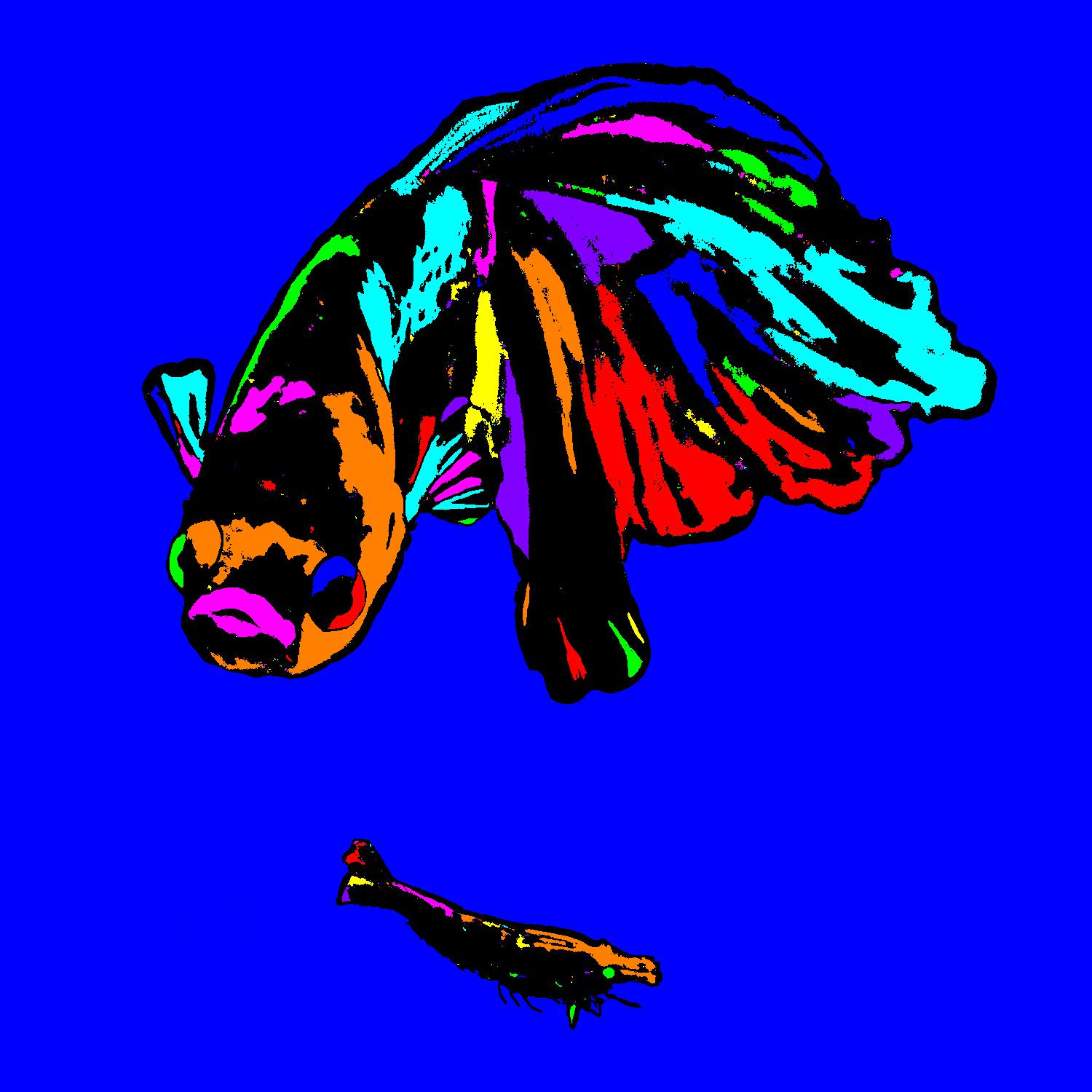 Leo Angry At Shrimp With Black Outline On Blue Background.