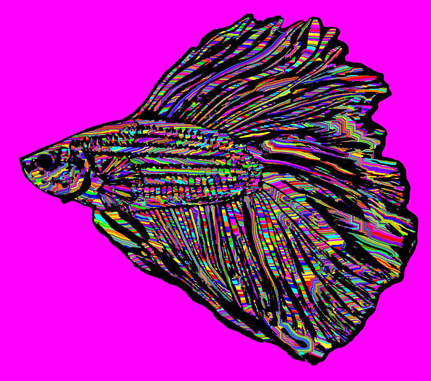 Flare Facing Left With Black Outline On Solid Pink Background With Snake Pattern.