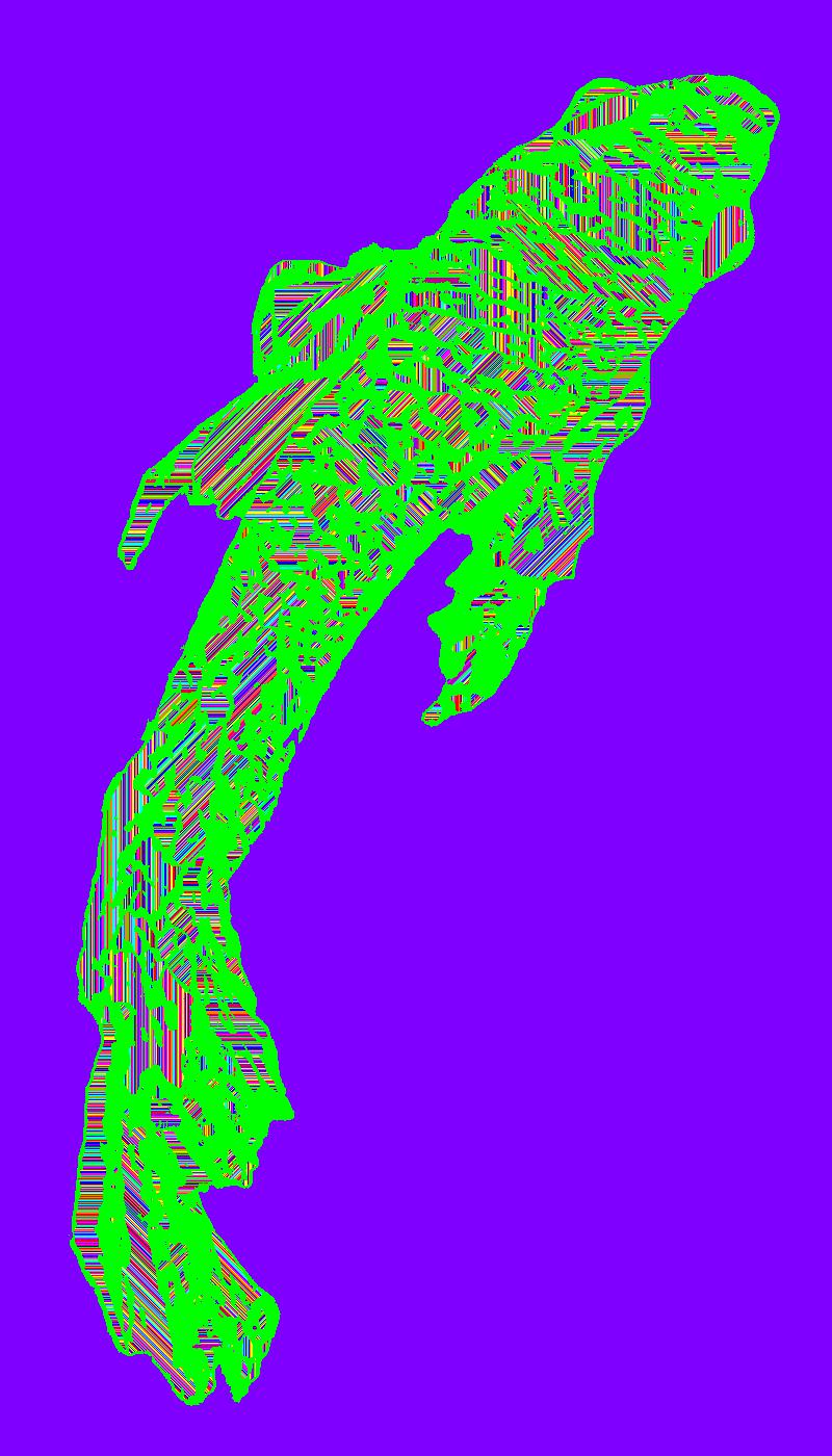 Plasma From Above With Green Outline On Solid Purple Background With Stripe Pattern.