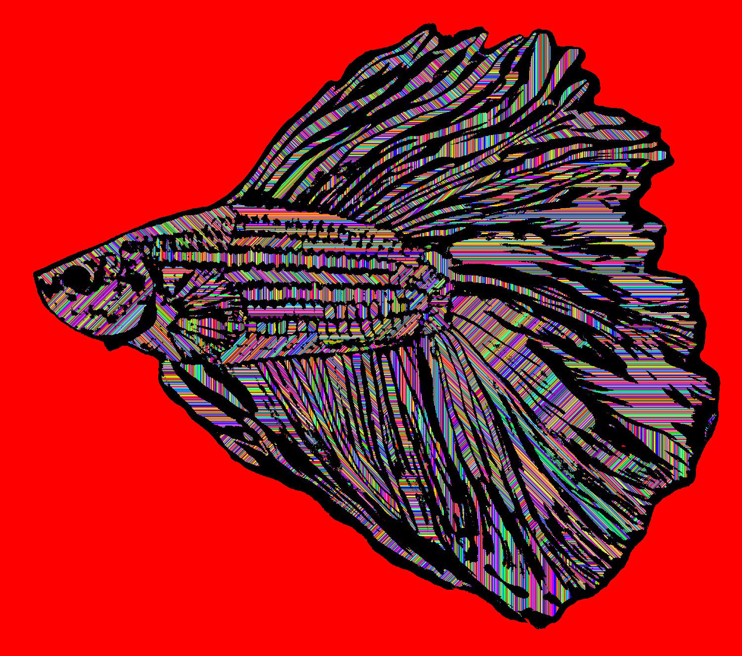 Flare Facing Left With Black Outline On Solid Red Background With Stripe Pattern.