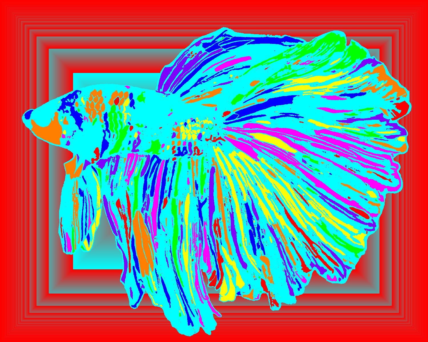 Leo Facing Left With Lightblue Outline On Multisquare Red Background With Fill Pattern.