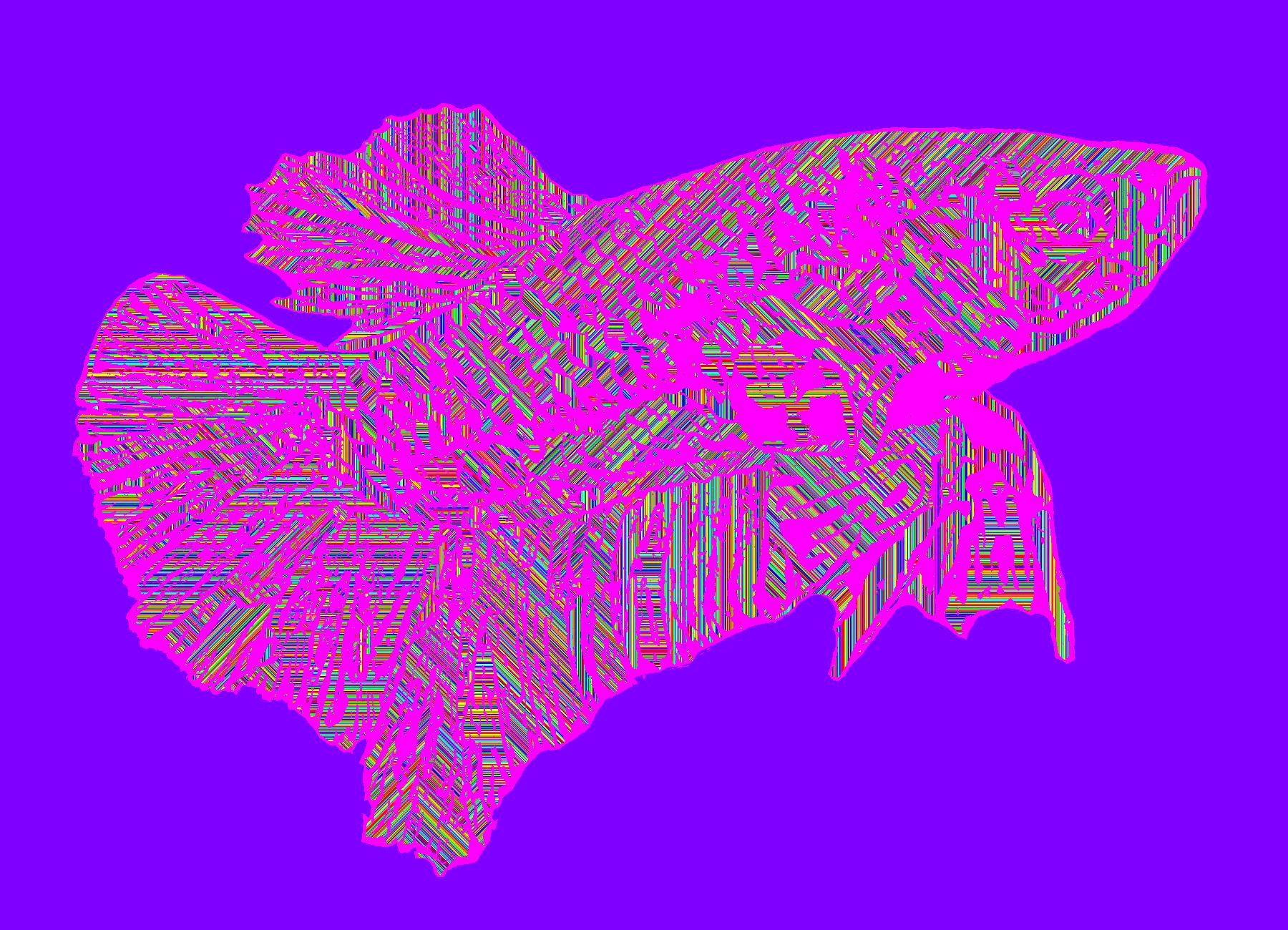 Older Plasma Facing Right With Pink Outline On Solid Purple Background With Stripe Pattern.