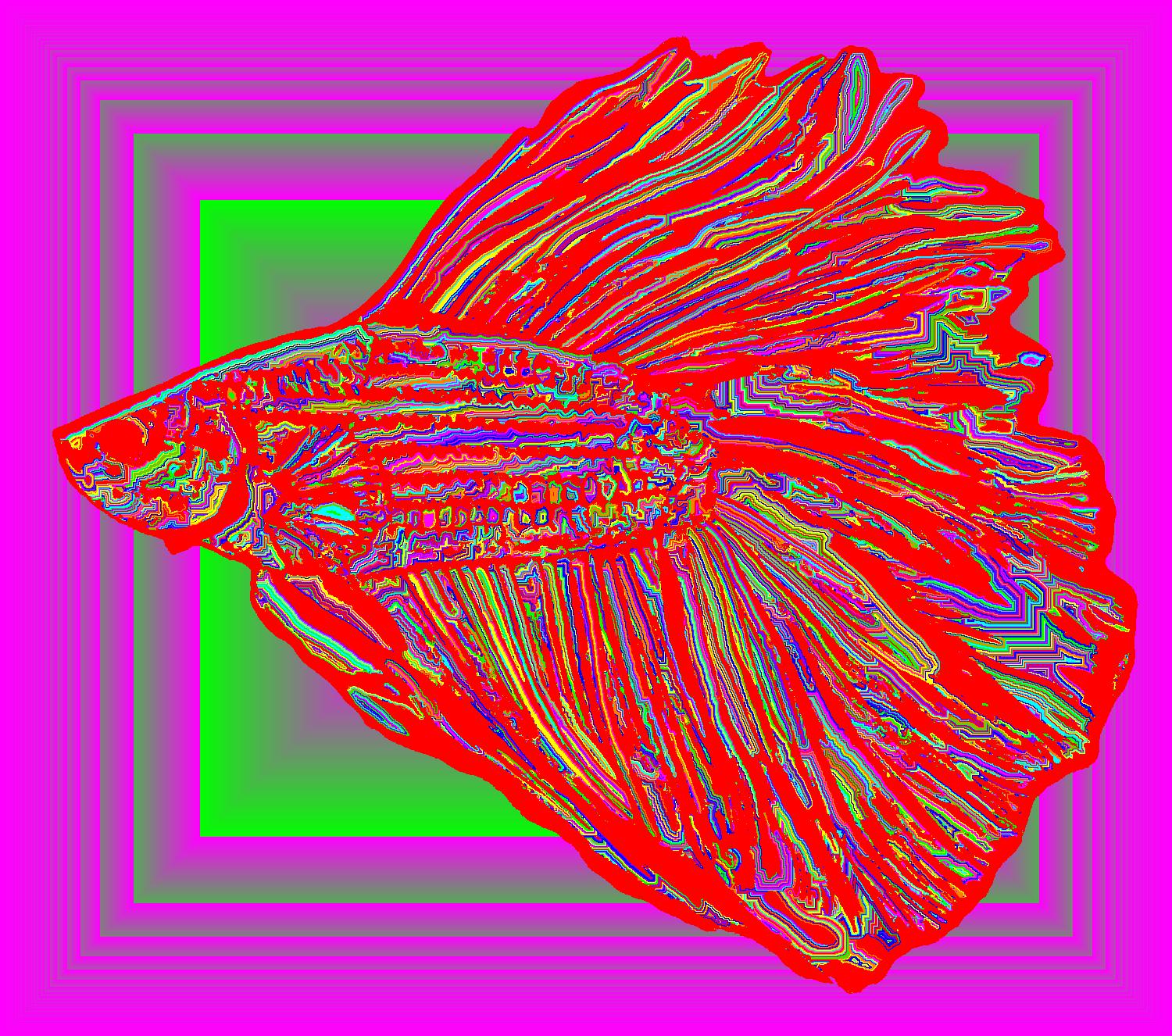 Flare Facing Left With Red Outline On Multisquare Pink Background With Edge Pattern.