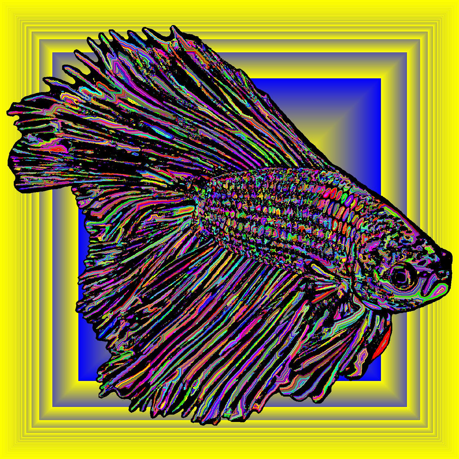 Flare Facing Forward With Black Outline On Multisquare Yellow Background With Edge Pattern.