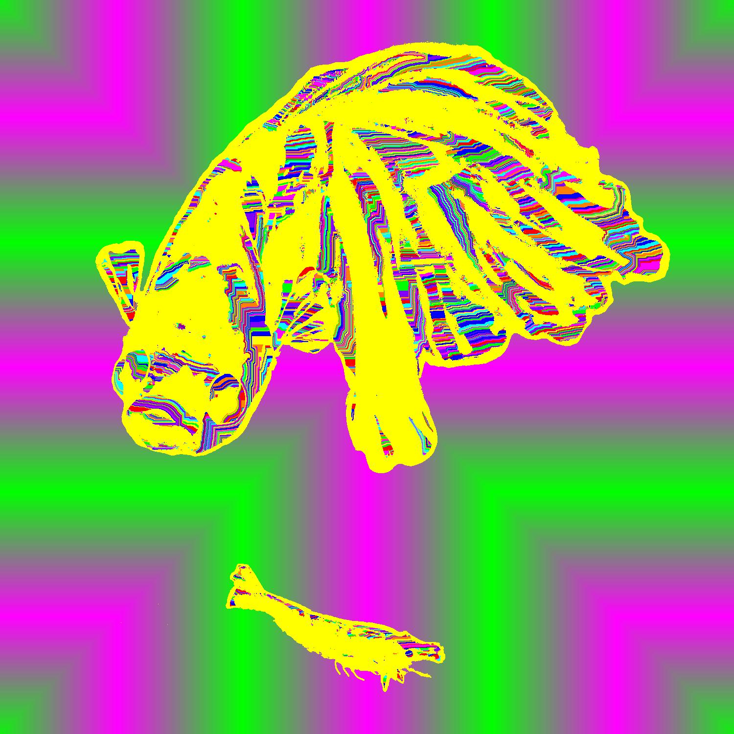 Leo Angry At Shrimp With Yellow Outline On Plus Pink Background With Snake Pattern.