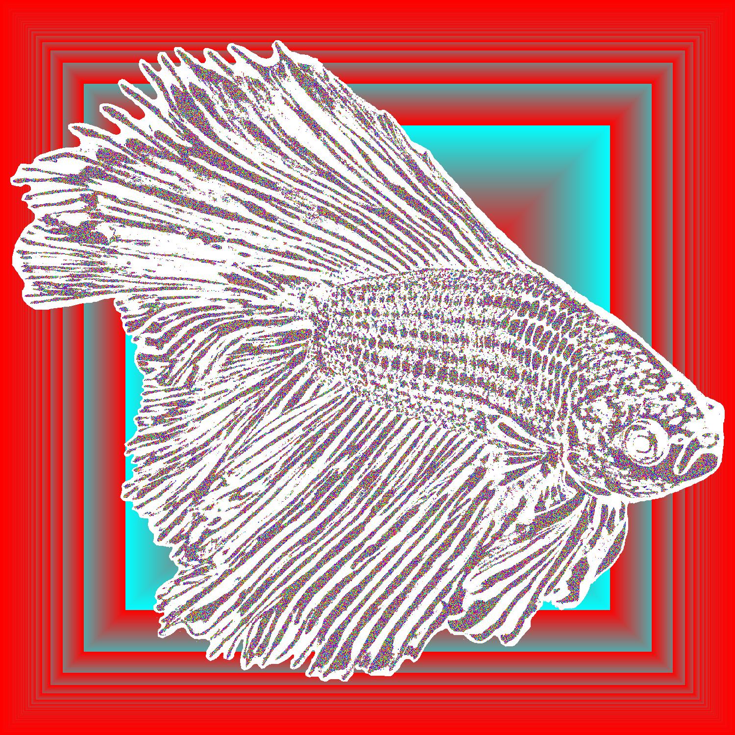 Flare Facing Forward With White Outline On Multisquare Red Background With Noise Pattern.