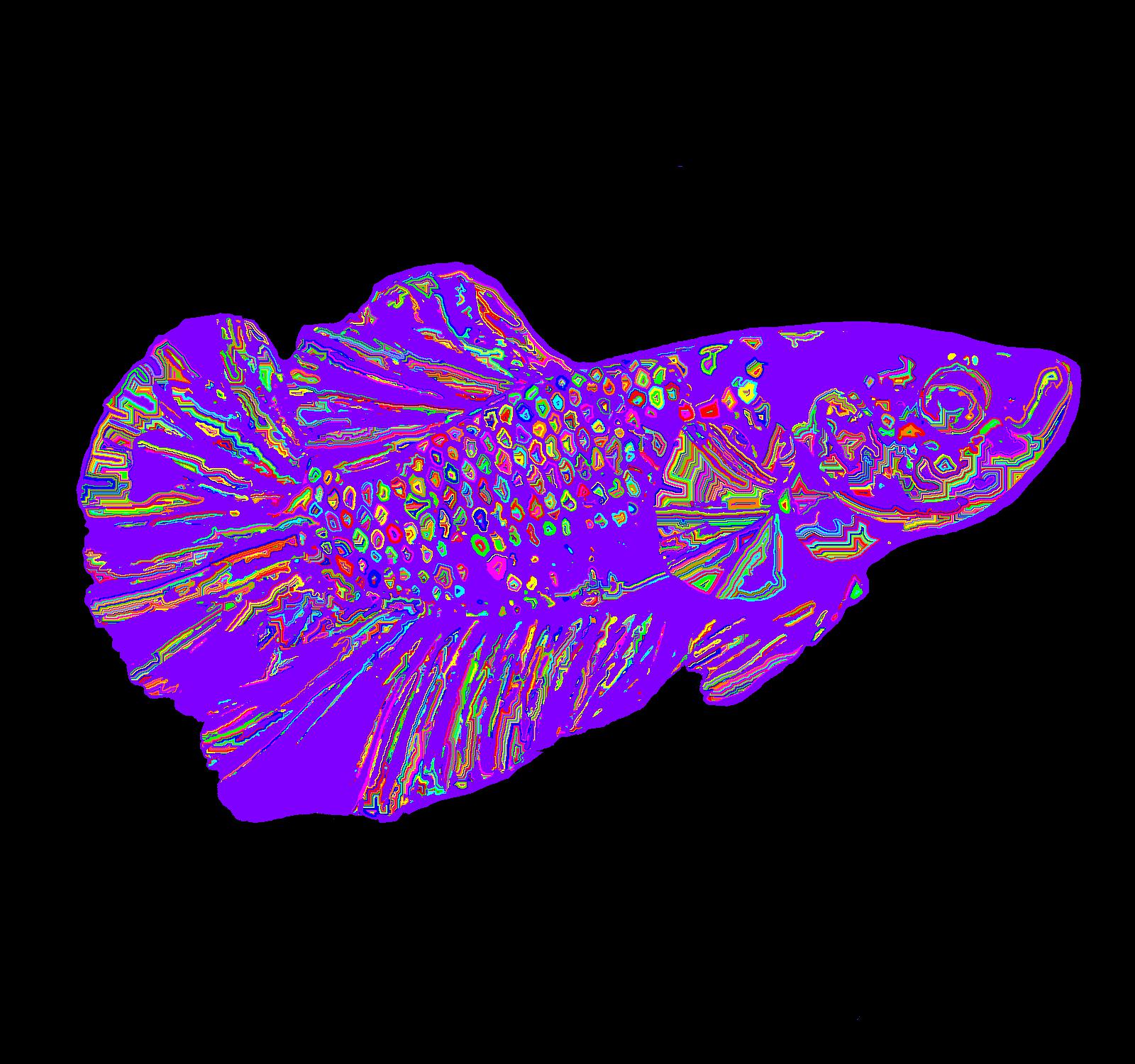 Young Plasma Facing Right With Purple Outline On Solid Black Background With Edge Pattern.