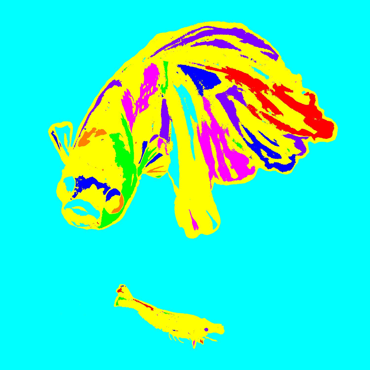Leo Angry At Shrimp With Yellow Outline On Lightblue Background With Fill Pattern.