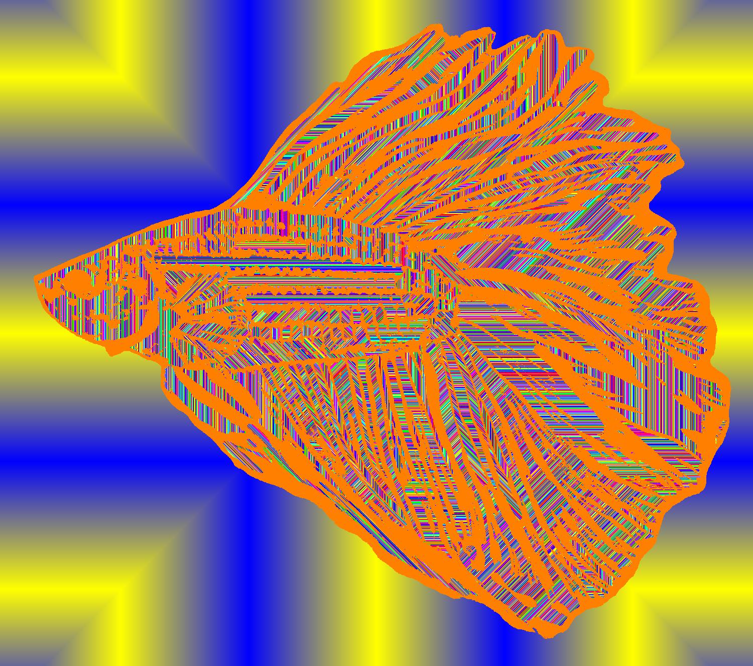 Flare Facing Left With Orange Outline On Plus Yellow Background With Stripe Pattern.