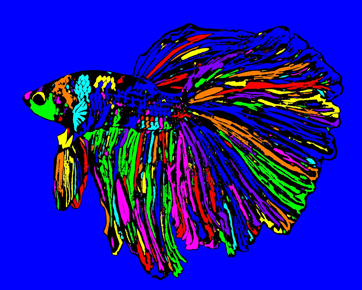 Leo Facing Left With Black Outline On Blue Background With Fill Pattern.