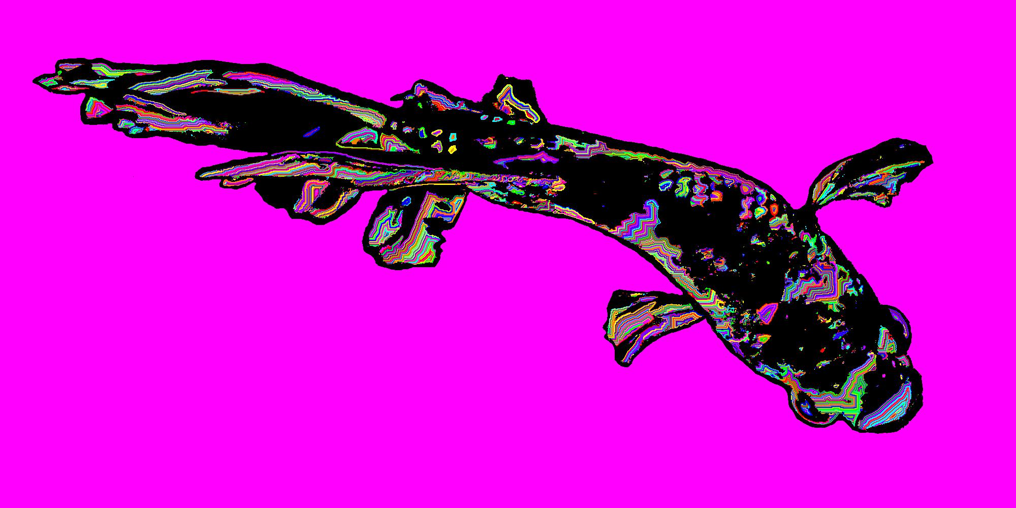 Leo From Above With Black Outline On Solid Pink Background With Edge Pattern.