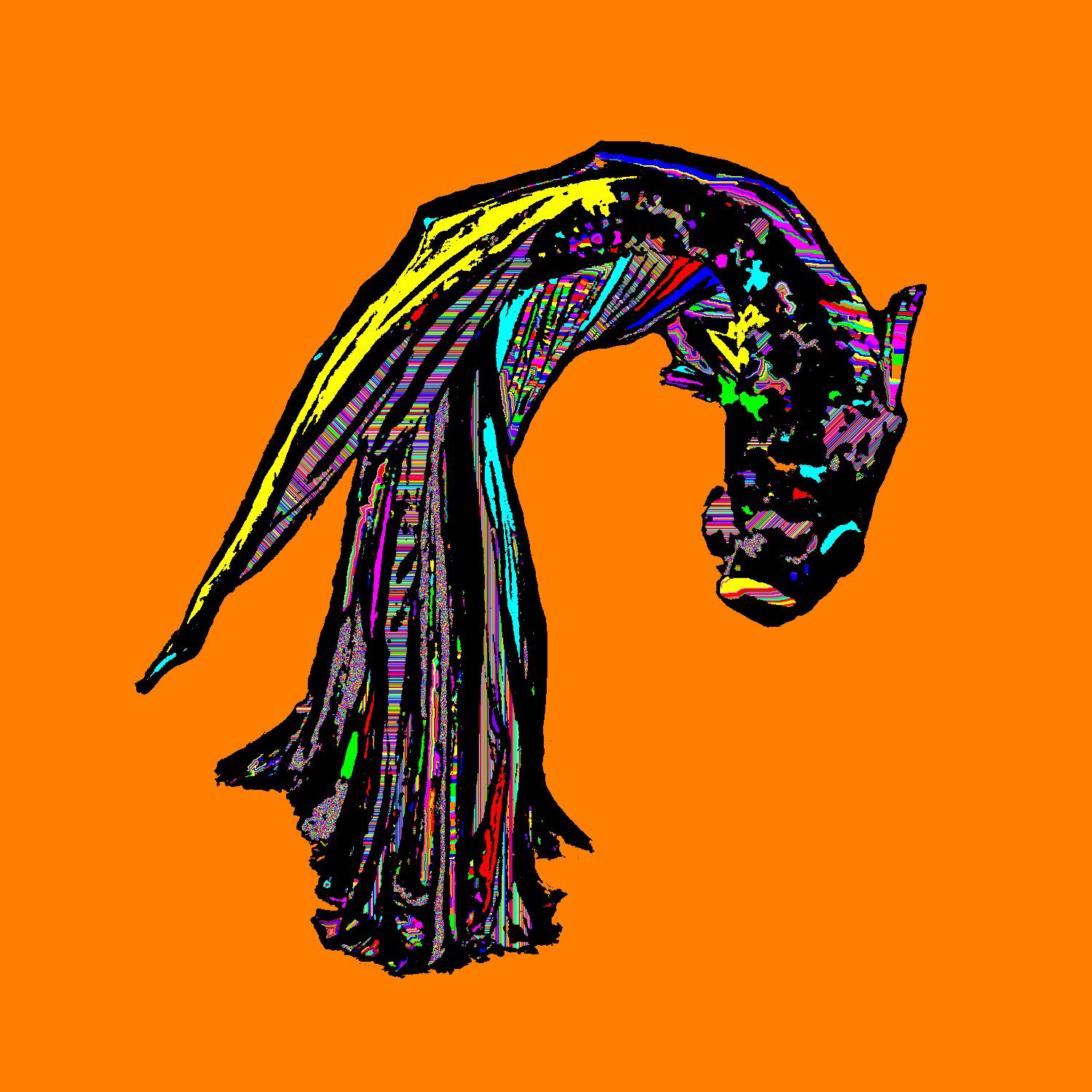 Leo Turning With Black Outline On Solid Orange Background With Mixed Pattern.