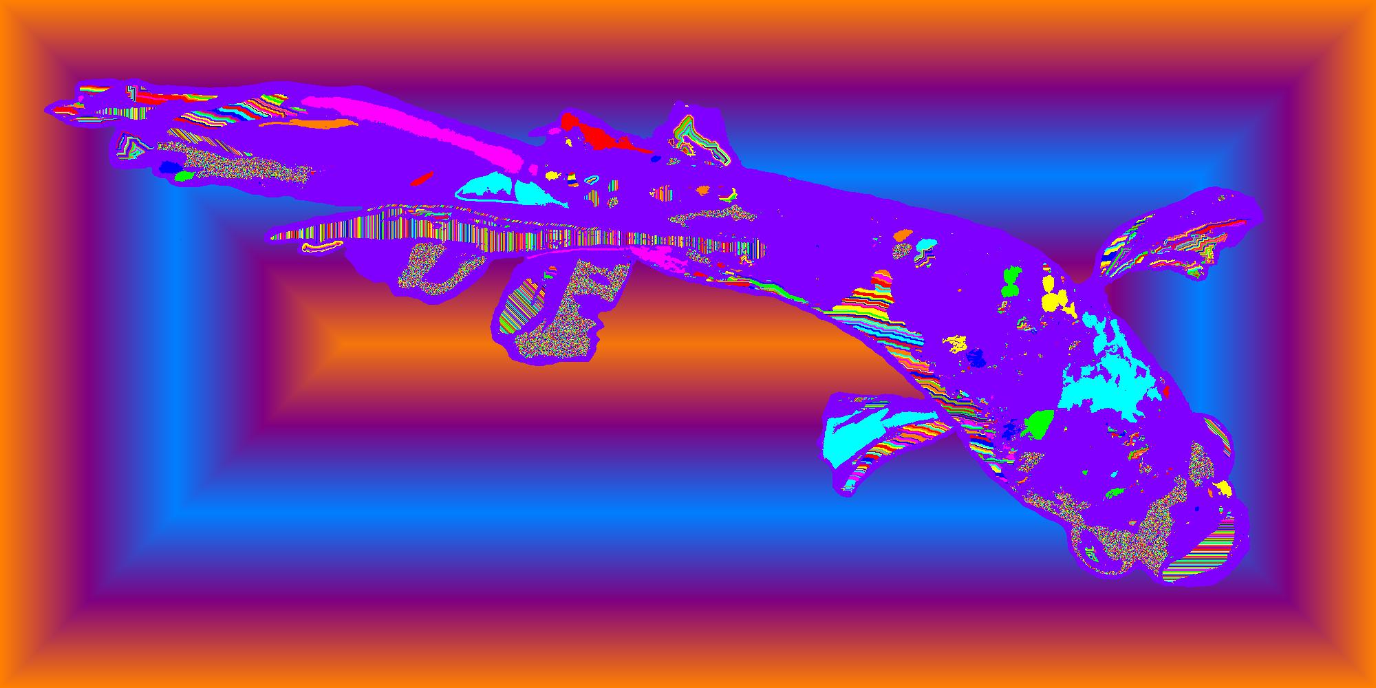Leo From Above With Purple Outline On Halo Orange Background With Mixed Pattern.