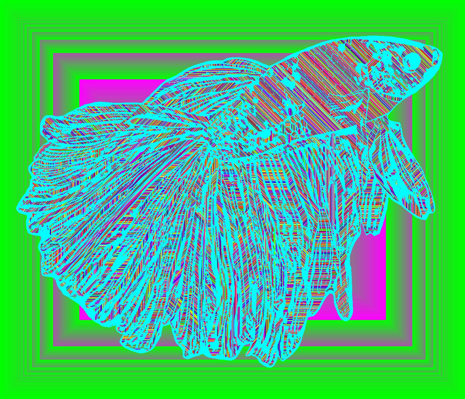 Leo Facing Right With Lightblue Outline On Multisquare Green Background With Stripe Pattern.