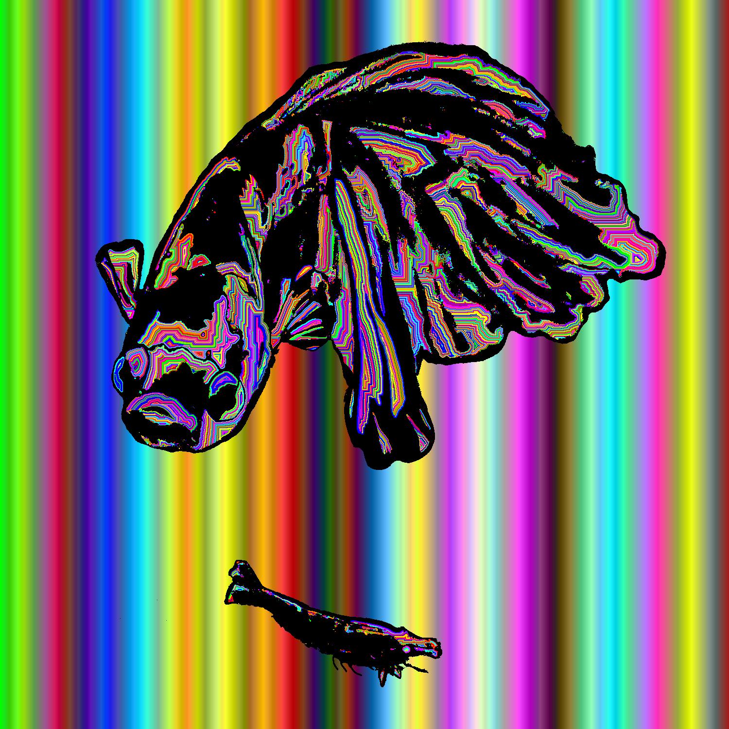 Leo Angry At Shrimp With Black Outline On Gradient Green Background With Edge Pattern.