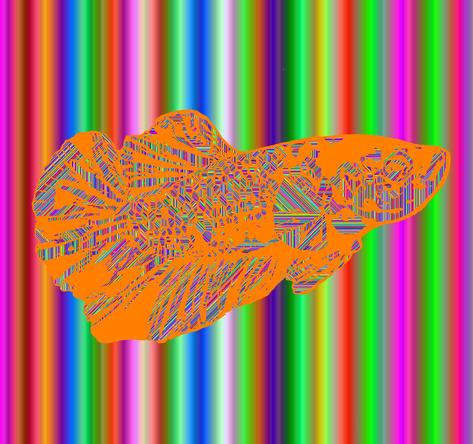 Young Plasma Facing Right With Orange Outline On Gradient Pink Background With Stripe Pattern.