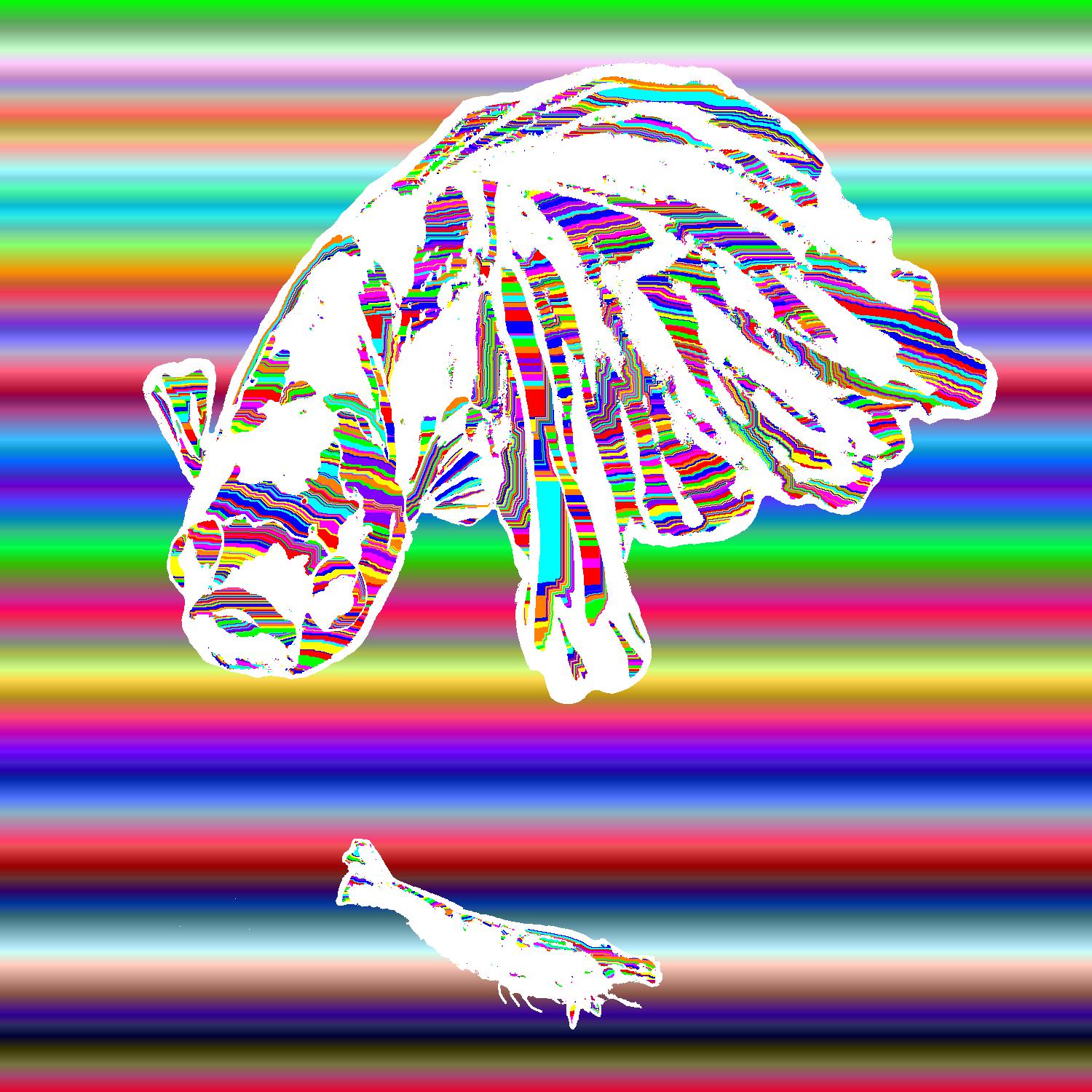 Leo Angry At Shrimp With White Outline On Gradient Green Background With Snake Pattern.