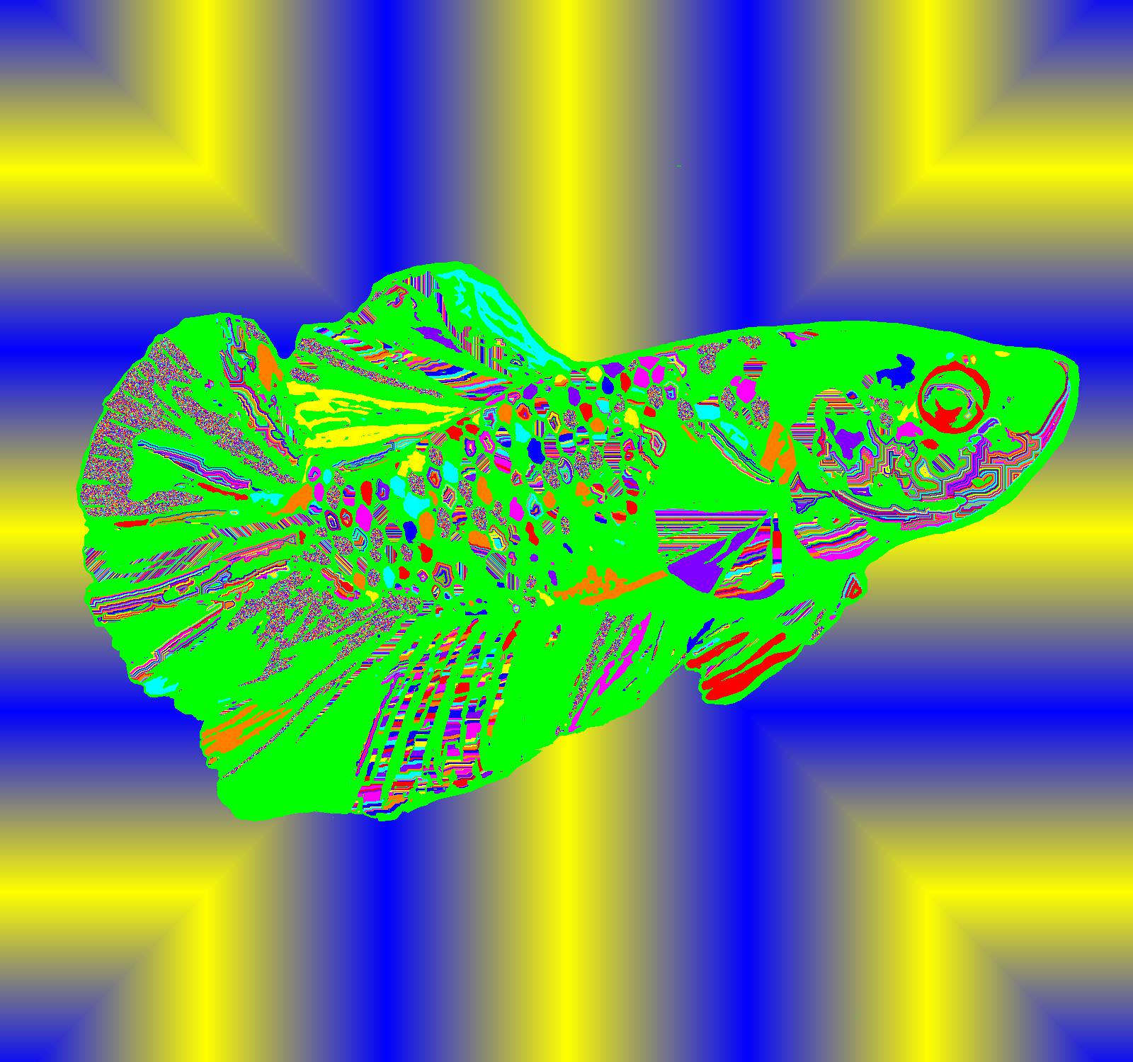 Young Plasma Facing Right With Green Outline On Plus Yellow Background With Mixed Pattern.