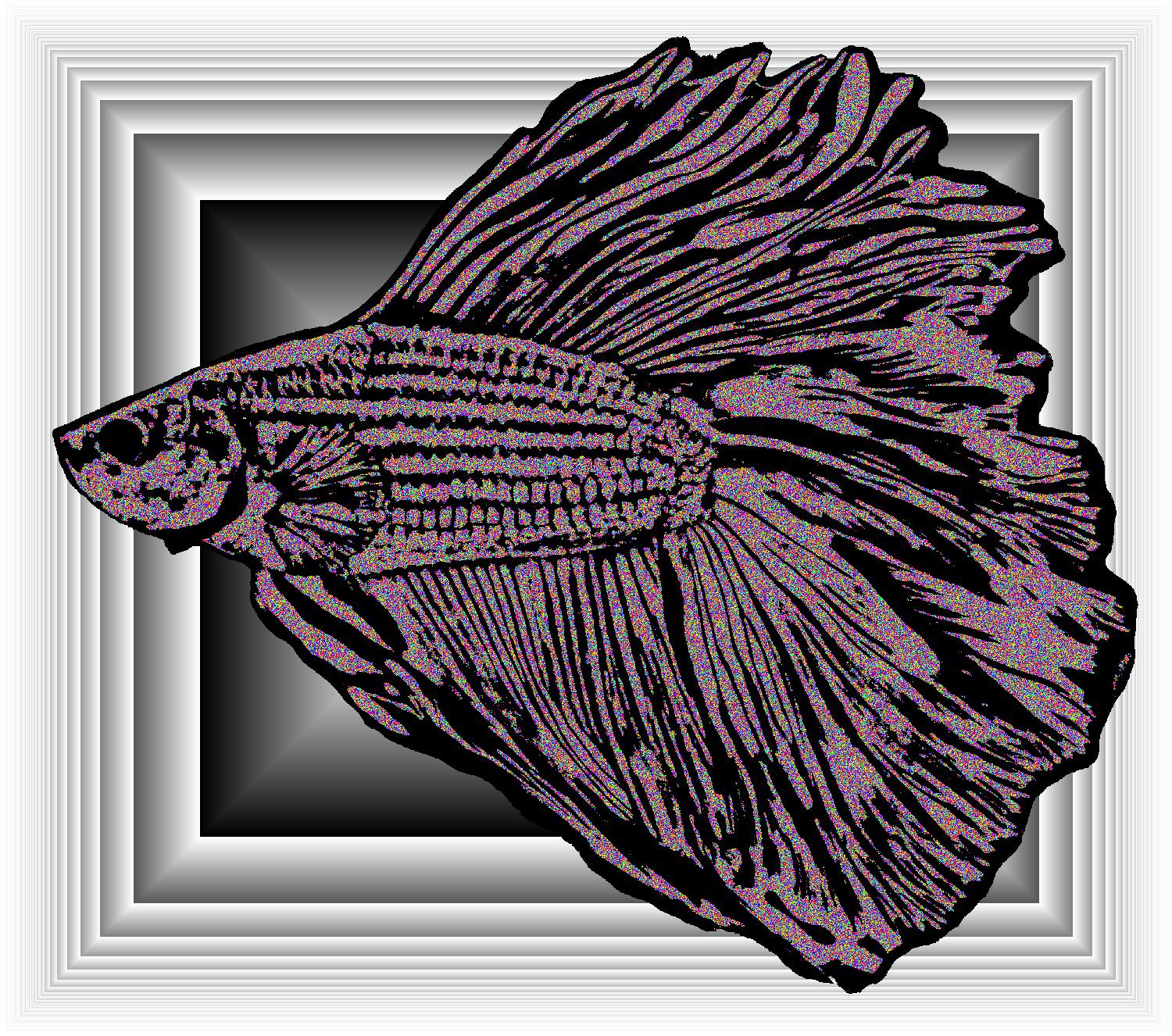 Flare Facing Left With Black Outline On Multisquare White Background With Noise Pattern.