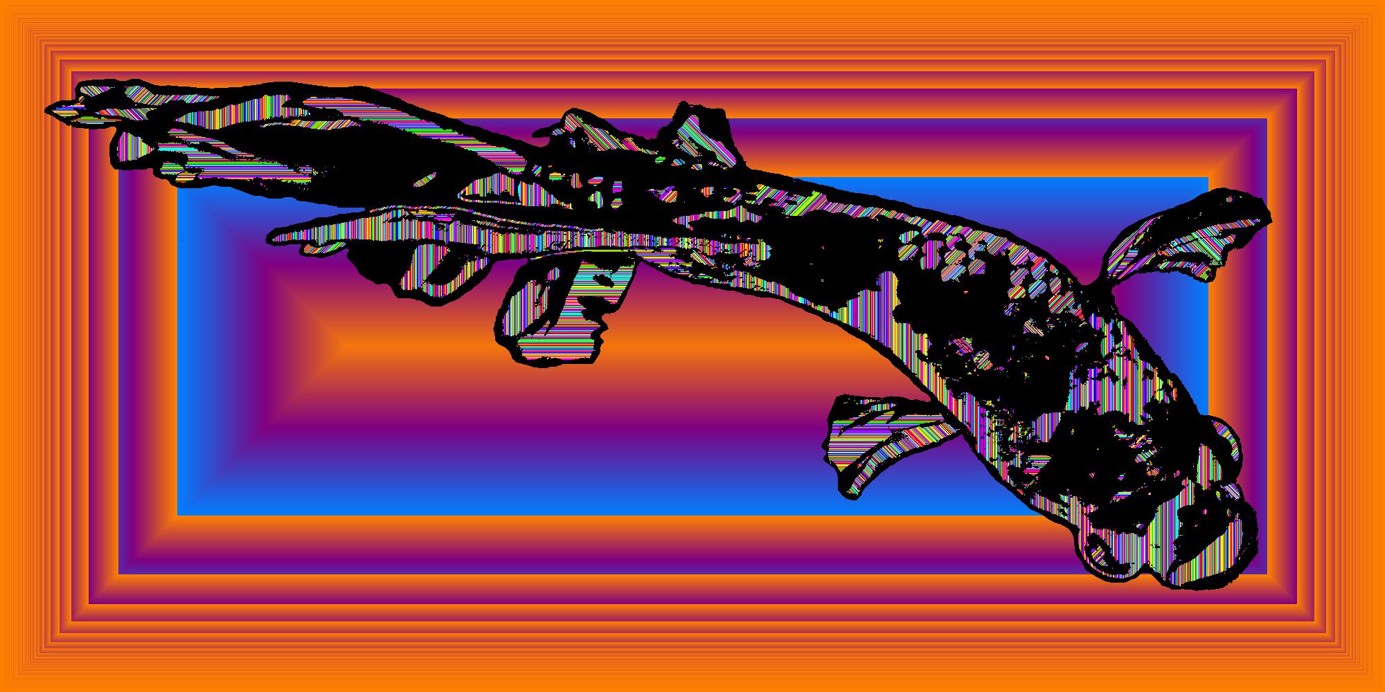 Leo From Above With Black Outline On Multisquare Orange Background With Stripe Pattern.