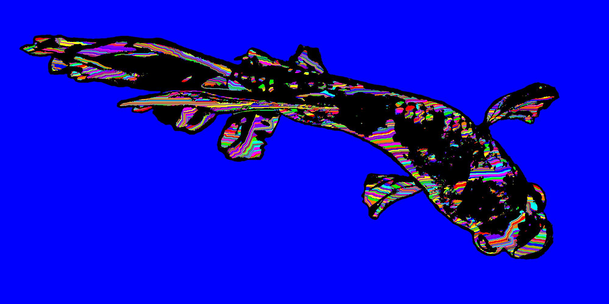 Leo From Above With Black Outline On Solid Blue Background With Snake Pattern.