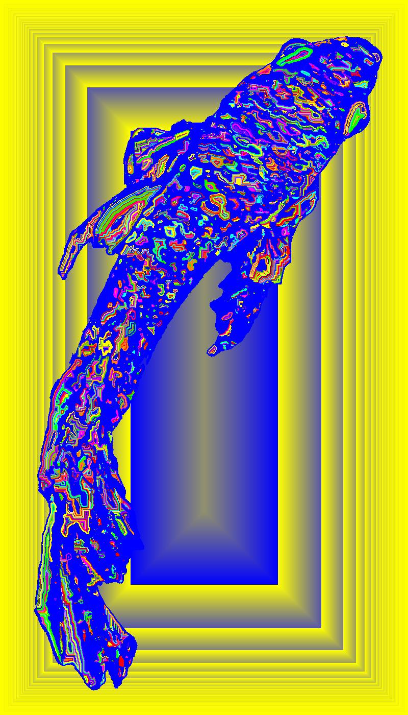 Plasma From Above With Blue Outline On Multisquare Yellow Background With Edge Pattern.