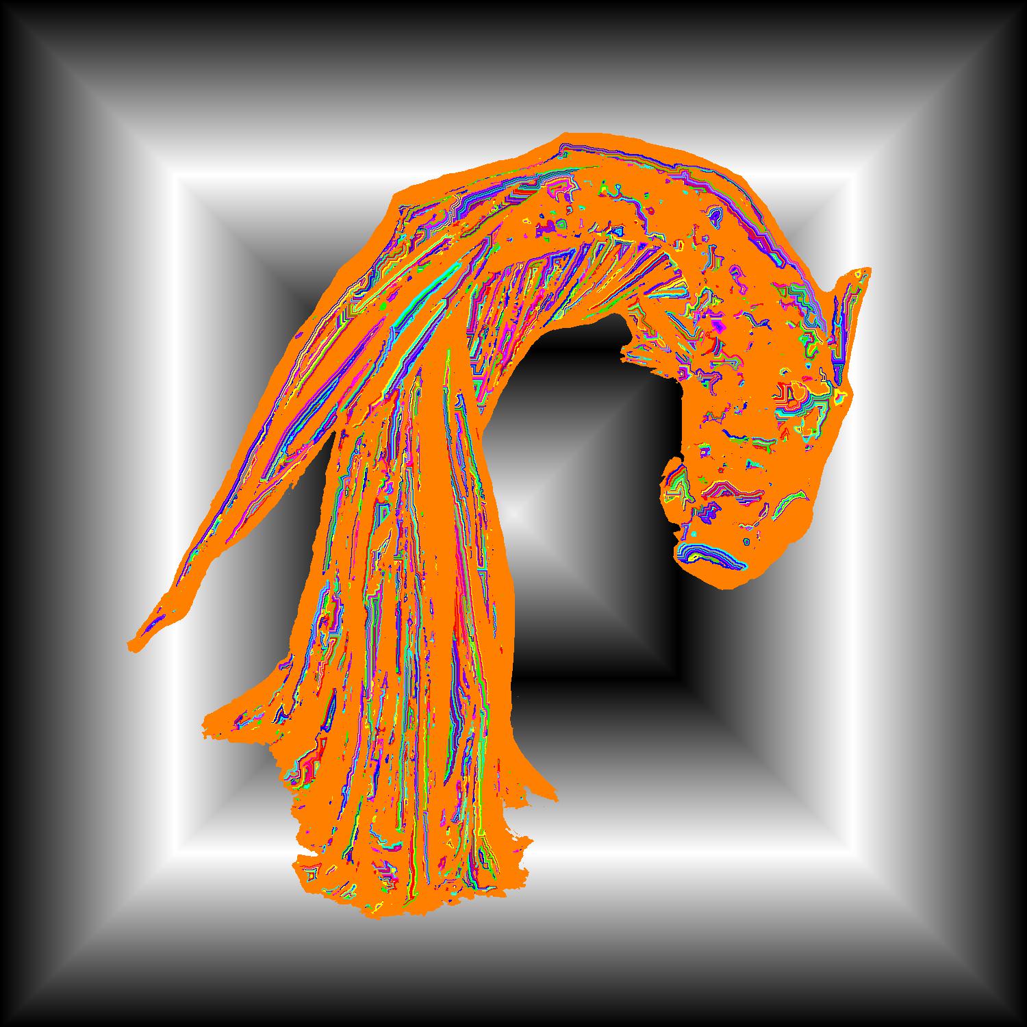 Leo Turning With Orange Outline On Halo Black Background With Edge Pattern.