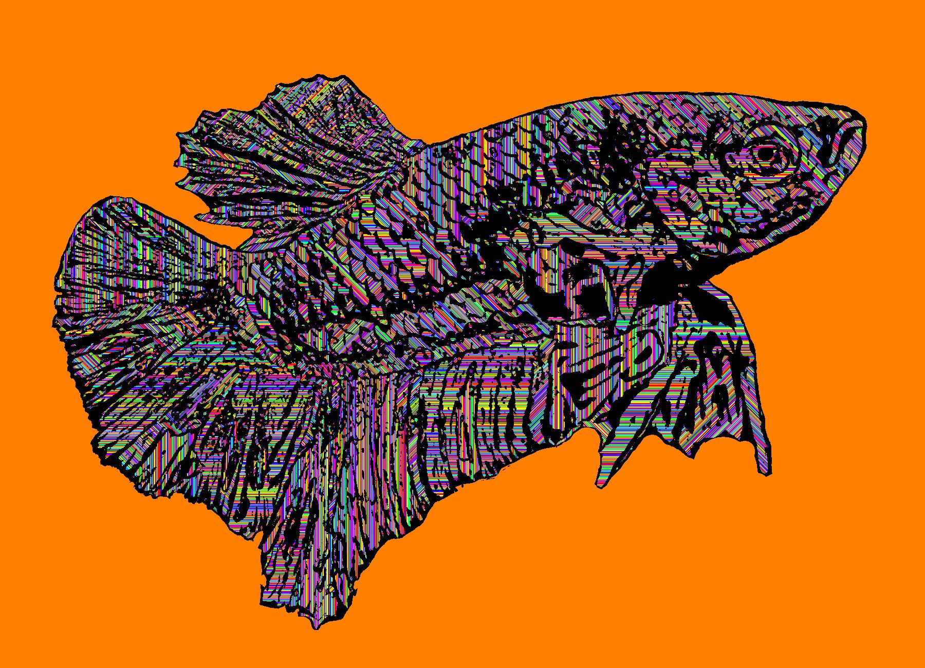 Older Plasma Facing Right With Black Outline On Solid Orange Background With Stripe Pattern.